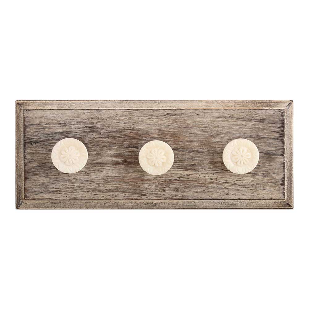 Cream Tiny Flower Bone Wooden Hook. A Perfect Complement to the Soft Tone of the Wood are these White Traditional Hat & Coat Hook Made of Genuine Porcelain and Brass. It can be use to Hang Jewellery, Leashes, Towels, Scarves, Light Weight Sweaters, Caps Etc.