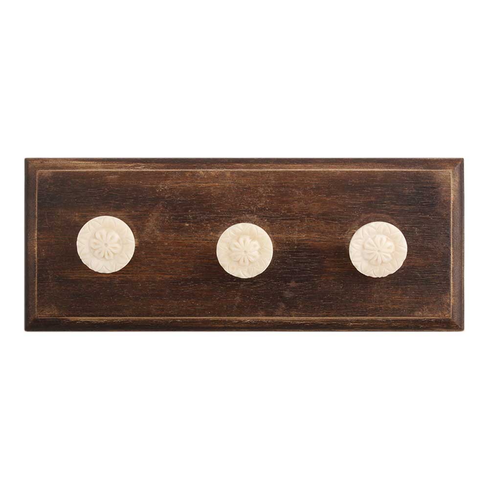 Cream Tiny Flower Bone Wooden Hook. A Perfect Complement to the Soft Tone of the Wood are these White Traditional Hat & Coat Hook Made of Genuine Porcelain and Brass. It can be use to Hang Jewellery, Leashes, Towels, Scarves, Light Weight Sweaters, Caps Etc.