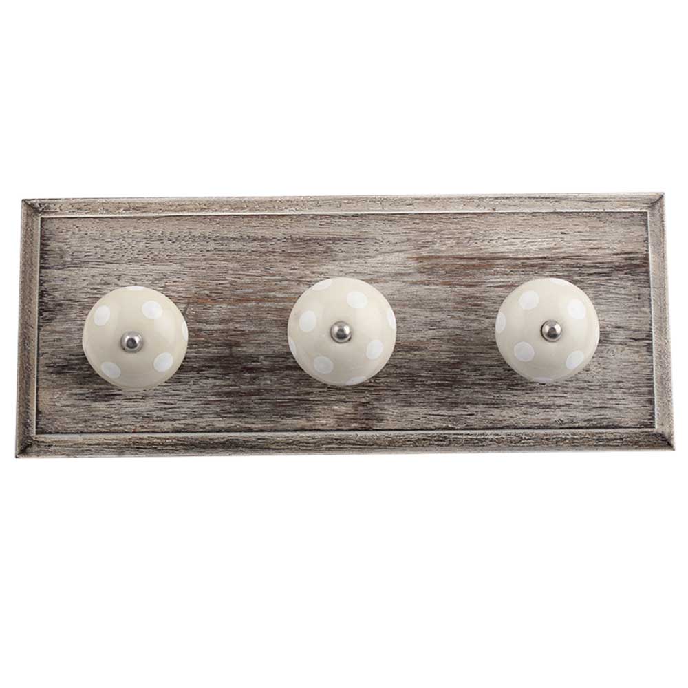Cream White Dot Wooden Hooks. A Perfect Complement to the Soft Tone of the Wood are these White Traditional Hat Coat Hook Made of Genuine Porcelain and Brass. It can be use to Hang Jewellery, Leashes, Towels, Scarves, Light Weight Sweaters, Caps Etc.