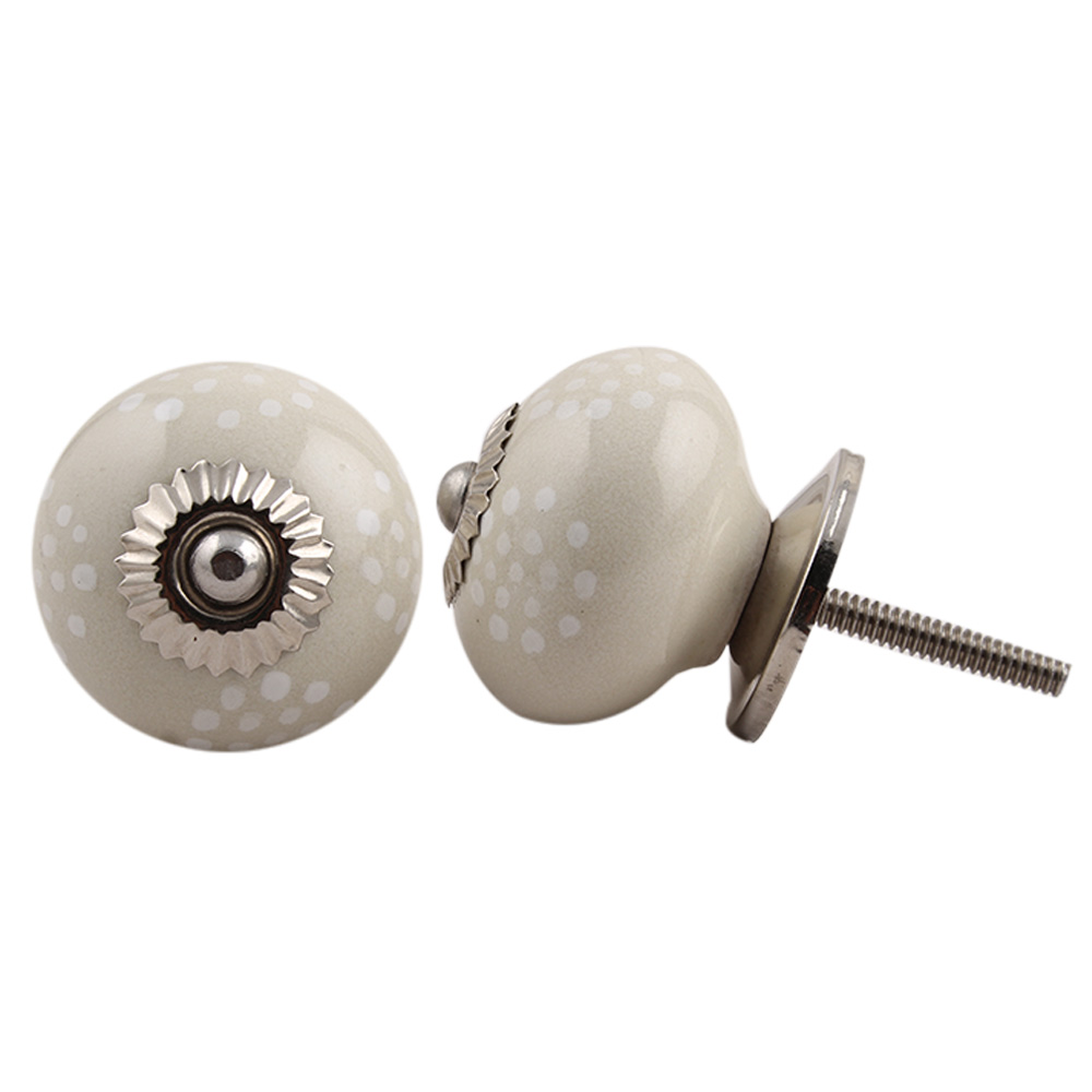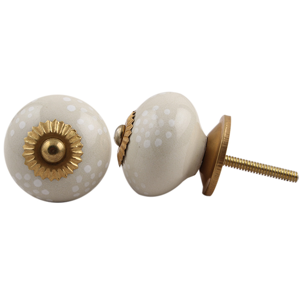 Cream White Dotted Knob. Ideal for kitchen cabinets, kitchen drawers, dining room, bed room, chest drawers, dressing tables, almirah