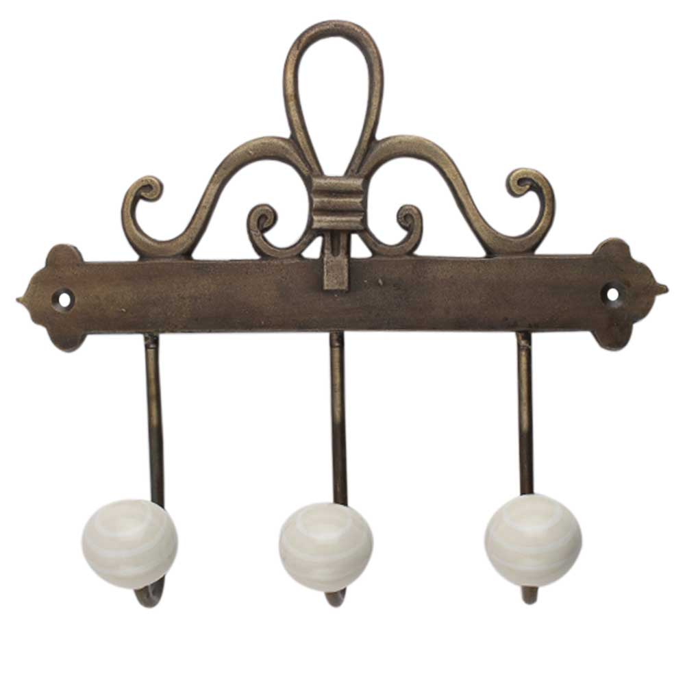 Cream White Strip Ceramic Iron Hook. A perfect complement to the soft tone of the wood are these white traditional hat coat hook made of genuine Porcelain and Brass. It can be used to hang Jewelry, Leashes, Towels, Scarves, light weight Sweaters, Caps etc.