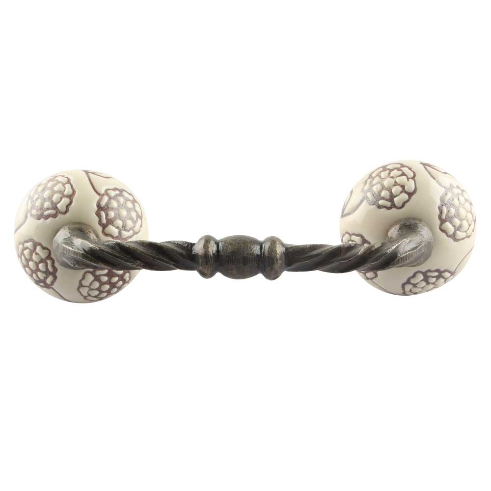 Cream With Brown Marigold Etched Ceramic Cut Bridge Handle. Ideal for Drawer, Dresser, Cabinet, Wardrobe, Cupboard and Almirah etc.