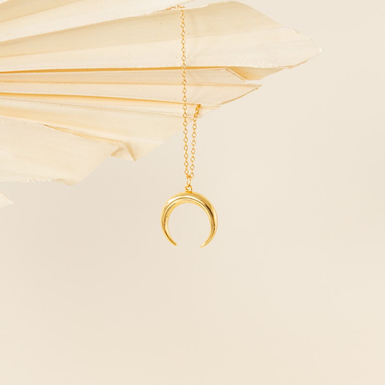 This Crescent Moon Pendant Necklace brings celestial beauty into everyday style with its graceful moon charm and soft golden sheen. Crafted from solid brass and finished with rich 22K gold plating, the necklace highlights the symbolism of intuition, femininity, and new beginnings. At 18 inches, it sits perfectly at the collarbone, offering a balanced, elegant profile. Each piece is handmade, giving it a refined artisanal character that makes it both meaningful and stylish.