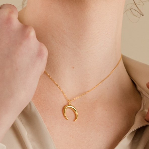 Keep the necklace dry and gently wipe after wearing to maintain its 22K glow and preserve the charm’s polished surface.