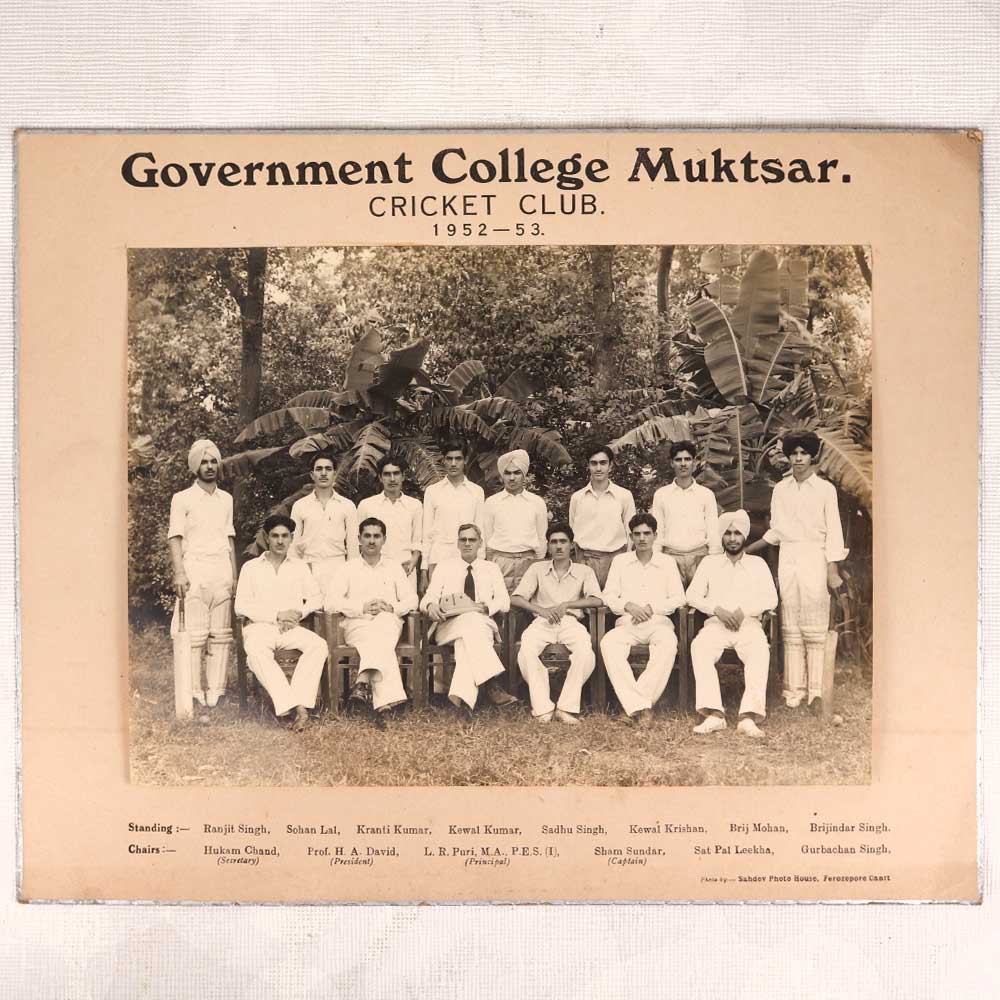 - Depicts a cricket club team at Government College Muktsar in 1952-53