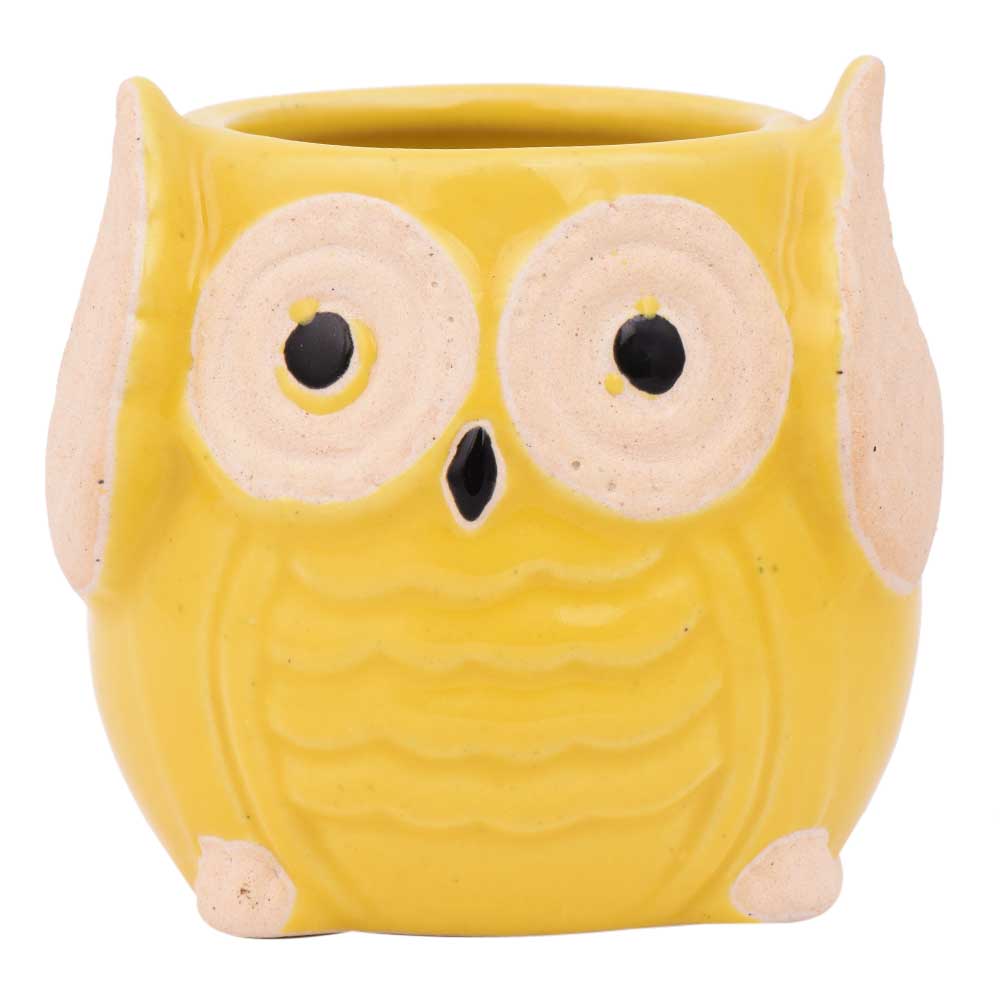 Cute Yellow Owl Ceramic Pot Planter to decorate your home, office desk, club, hotel interiors, balcony,garden,Indoor,Outdoor decoration, table top ,window sill, or any place as a decor for your living room, bedroom. Gift for your friends and relatives.