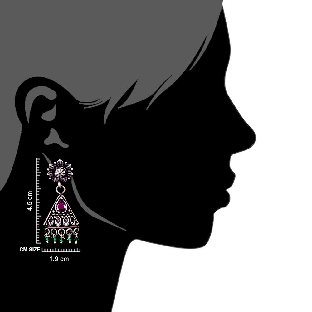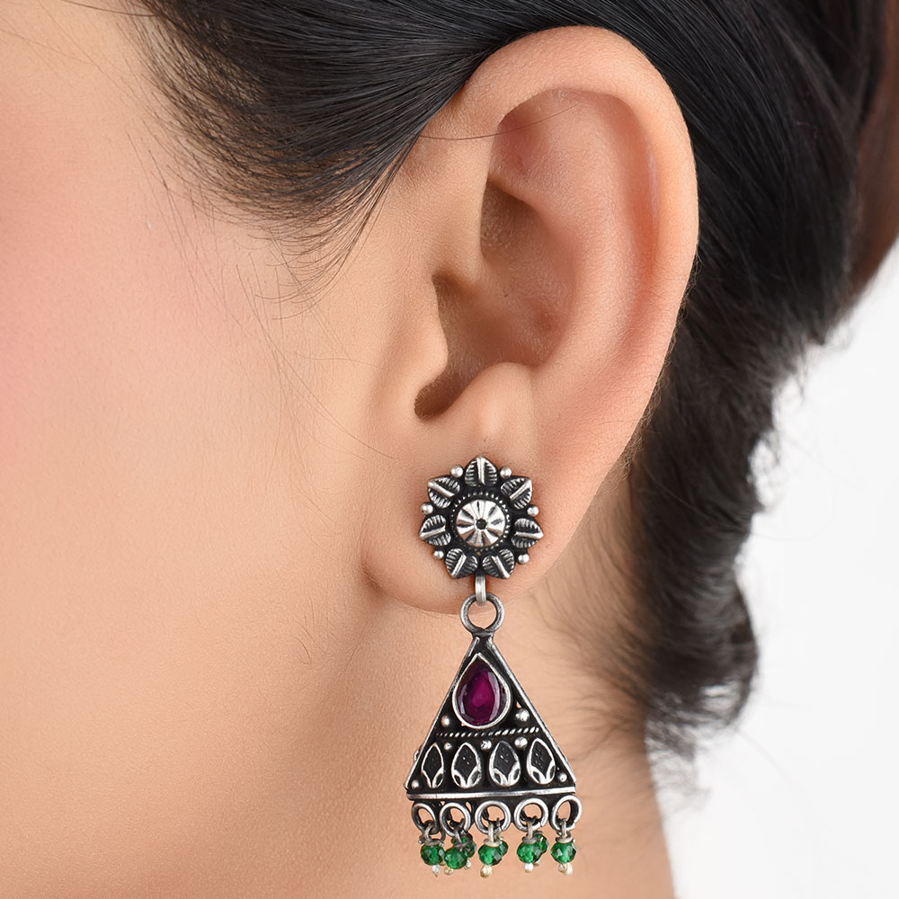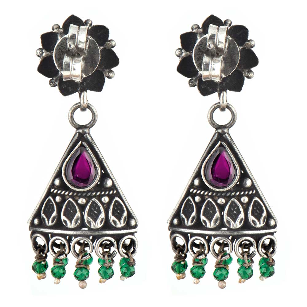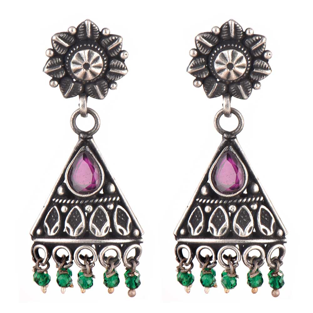 Handmade 92.5 Sterling Silver Earrings with a triangle shape with amethst stone with green onyx beads makes it suitable to match it with your casual as well as traditional clothes. Wear it to office, picnic, first date , valentine day etc.