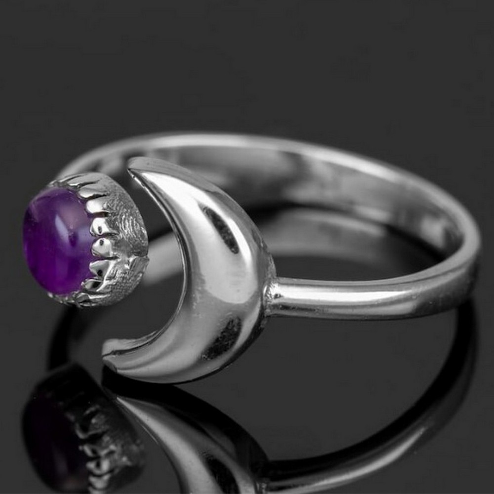 • Dainty Amethyst Crescent Moon Ring 925 Sterling Silver Handmade For Women