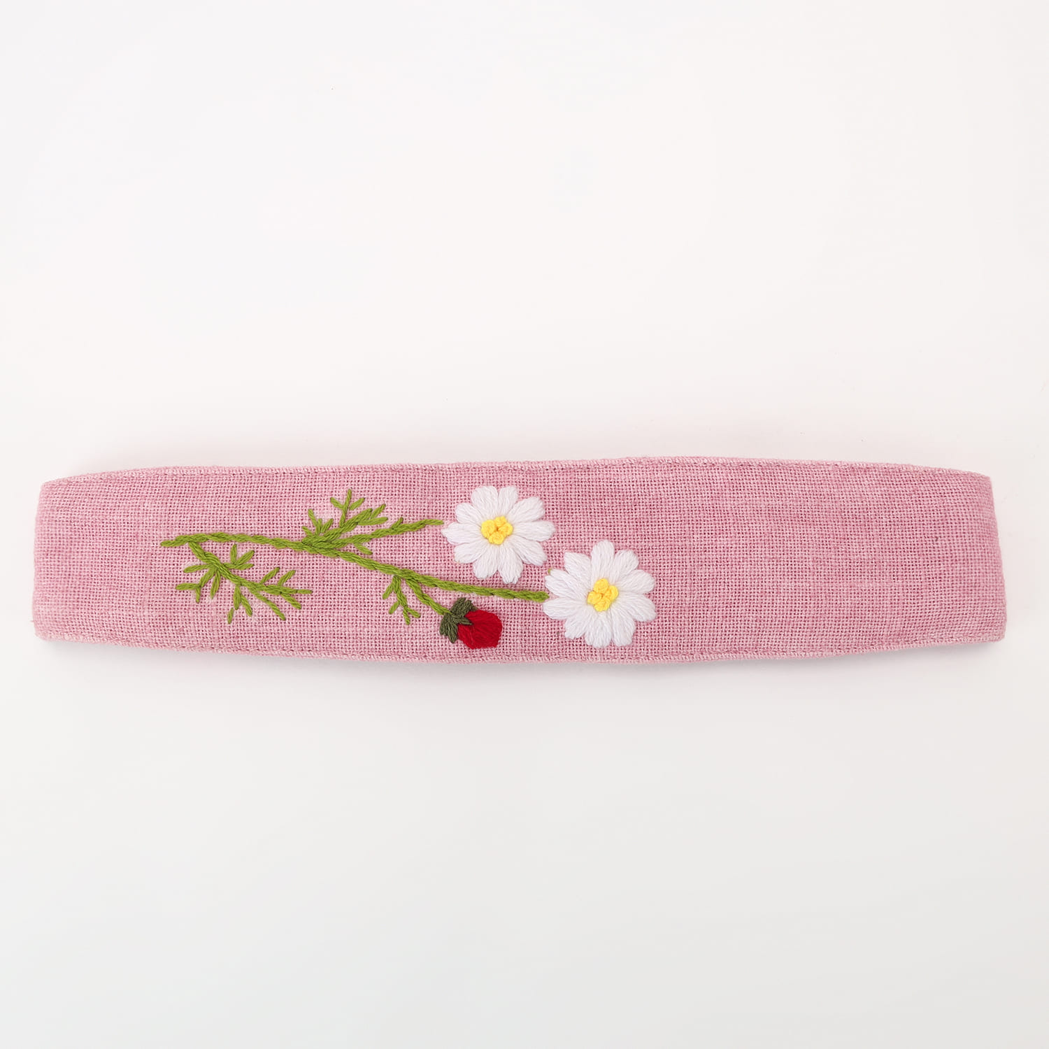 The Daisy Delight Hairband brings a playful, feel-good accent to everyday styling. Crafted from breathable cotton, its gentle pink tone adds a fresh, cheerful lift while staying easy on the scalp. Lightweight and flexible, it offers a secure hold without tugging or pressure. Designed for daily routines, this hairband blends comfort with a lighthearted, feminine charm.