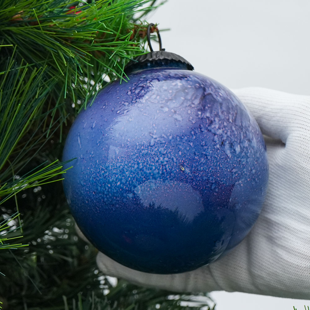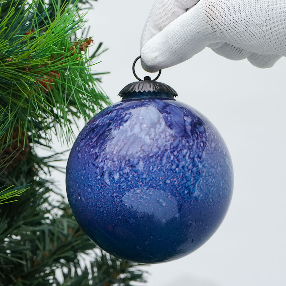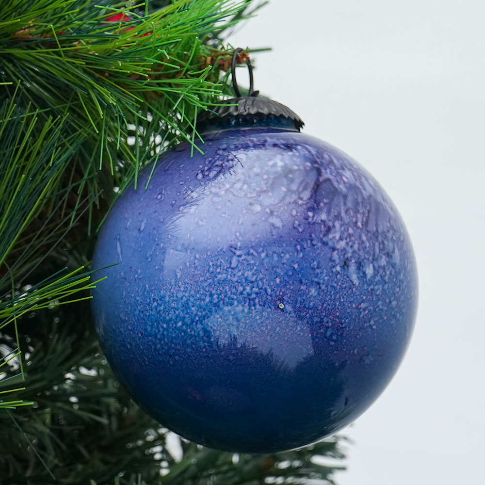 Dark Blue Round Glass Christmas Ornament. Crafted from high-quality glass with a smooth glossy finish, this decorative bauble adds a classic and festive touch to Christmas trees, wreaths, and holiday displays.