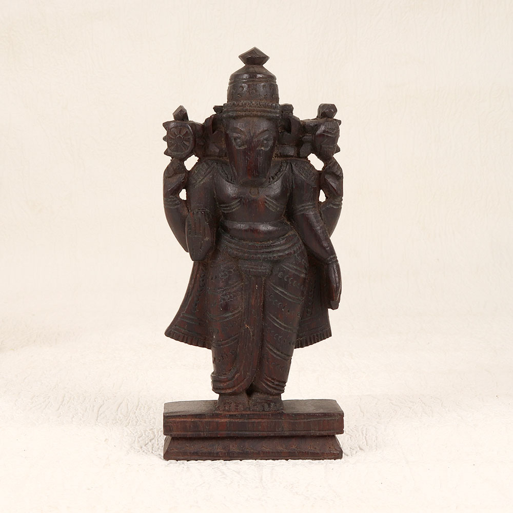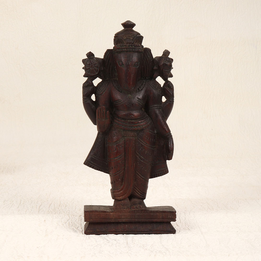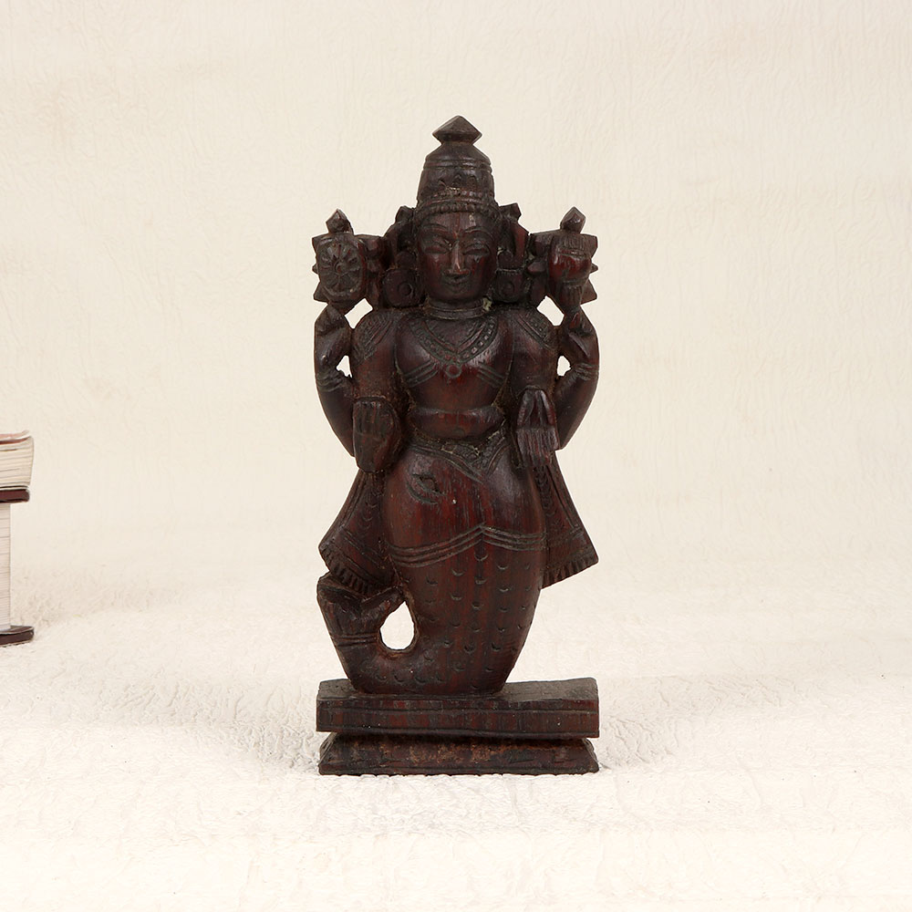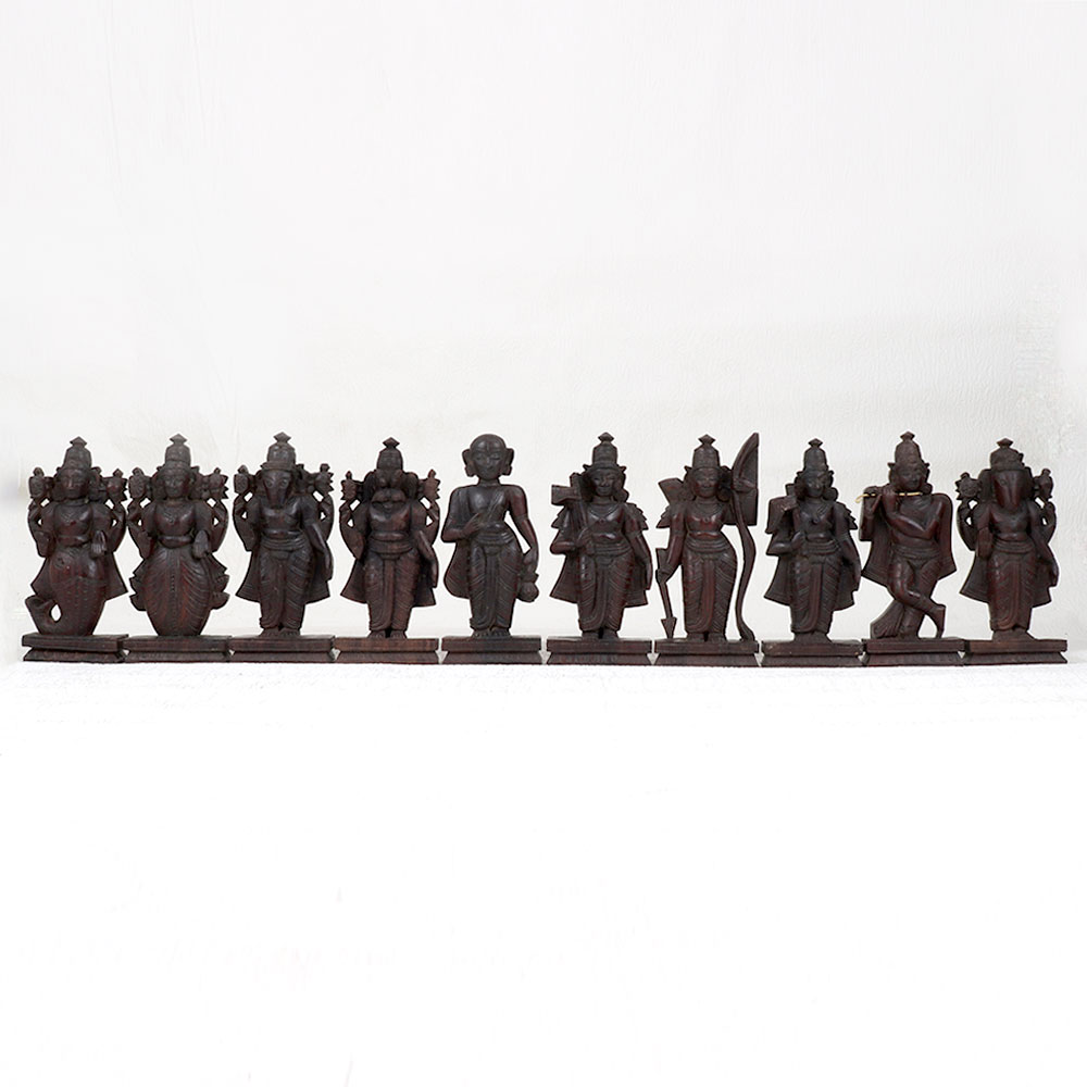 This Vintage Wooden Statue Set features the Dashavatara, the ten incarnations of Lord Vishnu. Crafted with precision by skilled Indian artisans, each statue boasts a dark brown finish that exudes timeless elegance. Handcrafted from finest-quality brass, these statues radiate a sense of divine craftsmanship. The Dashavatara symbolizes the incarnations of Lord Vishnu, each representing a different facet of cosmic evolution and protection. From the majestic Matsya (the fish) to the serene Kalki (the warrior on a white horse), these intricately detailed statues capture the essence of each avatar. Whether placed in a home, office, restaurant, hotel, or cafe prayer room, these statues add a touch of spiritual grace to any space. Beyond their spiritual significance, these statues make for a captivating vintage collection, showcasing the rich cultural heritage of India. Ideal for gifting on special, festive, or auspicious occasions, they carry a profound symbolism and embody the blessings of Lord Vishnu.