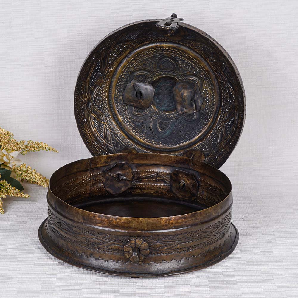 Introducing the finest masterpiece in jewelry storage, the best jewelry box crafted with utmost precision and dedication by highly skilled Indian craftsmen. Using traditional methods passed down through generations, this brass jewelry box exudes an unparalleled charm. Its black finish adds a touch of vintage elegance, evoking a sense of timeless beauty. Adorned with intricate engravings and mesmerizing patterns, this jewelry box is a testament to the artistry and craftsmanship of its creators. Its top handle allows for effortless portability, while the secure latch ensures your precious items remain safe and protected. Originally designed to store jewelry at home, this versatile piece now serves multiple purposes. Whether used for storing jewelry or safeguarding cherished mementos, this jewelry box becomes an exquisite addition to any space. Ideal for embellishing your home, office, restaurant, or hotel, it effortlessly becomes a captivating centerpiece. Its allure is equally captivating when displayed at exhibitions or museums, attracting the attention of discerning enthusiasts. Make your loved ones feel cherished by gifting them this remarkable jewelry box on special or festive occasions. Experience the timeless beauty and functionality of this travel jewelry box, a treasure that transcends generations.