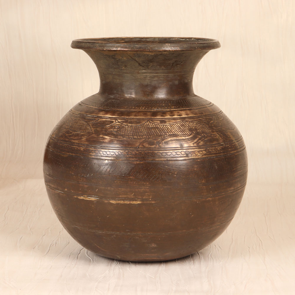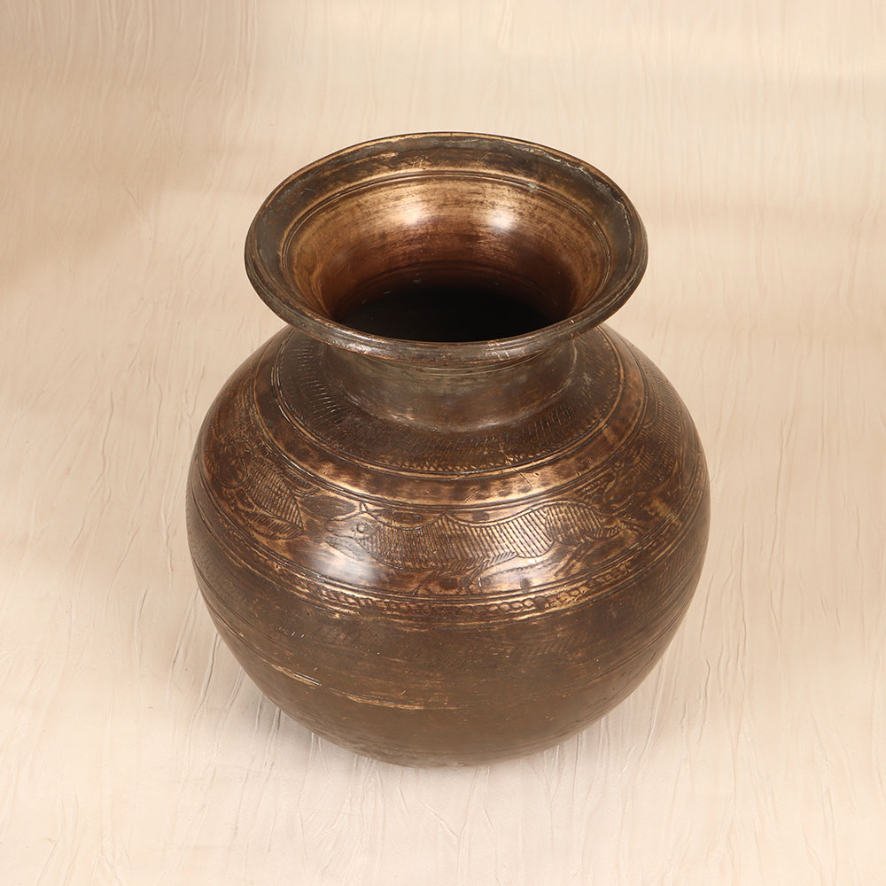Unlock the spiritual and aesthetic power of this stunning vintage brass holy water pot, meticulously crafted by the skilled artisans of Gujarat, India. Featuring intricate engraving that showcases the region's renowned artistic traditions, this heirloom-quality piece is a testament to the enduring beauty of ancient craftsmanship. Durable and built to last, this holy water pot is perfect for daily use in your puja room or as a captivating centerpiece in your living space. Fill it with blessed holy water to purify the air and infuse your home with the tranquil energy of sacred rituals. Or, use it to hold flowers, incense, or other offerings as you deepen your personal spiritual practice. Whether you're looking to elevate your home decor or seeking to strengthen your connection to timeless traditions, this vintage brass holy water pot is an investment that will be cherished for generations. Discover the beauty and power of this exquisite handcrafted treasure and let it inspire your spiritual journey and transform your living space.