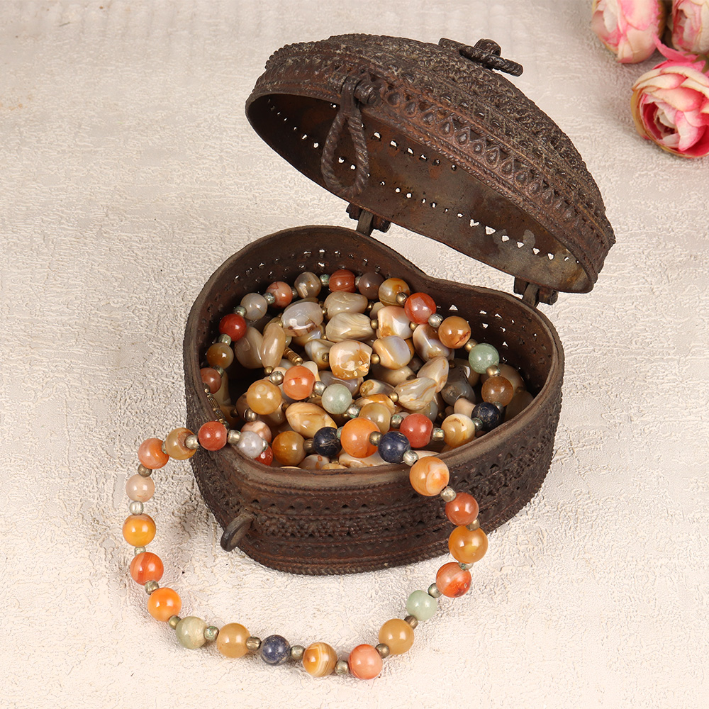 Enhance your jewelry collection with our exquisite Vintage Brass Heart-Shaped Jewelry Box. Crafted with precision and care by talented Indian artisans in the traditional Odisha Art style, this box is a testament to their craftsmanship. The heart shape, adorned with intricate jali work and beautiful engravings, adds a touch of timeless elegance. Made from high-quality brass, the jewelry box features a secure latch, ensuring your precious stones and jewelry are stored safely. The antique dark finish lends it an aura of nostalgia, making it a perfect addition to any vintage collection. This handmade masterpiece is versatile, finding its place in homes, offices, restaurants, hotels, or cafes, where it serves as both a functional storage solution and a captivating decor piece. Impress your loved ones by gifting them this vintage brass jewelry box on special, festive, or auspicious occasions.