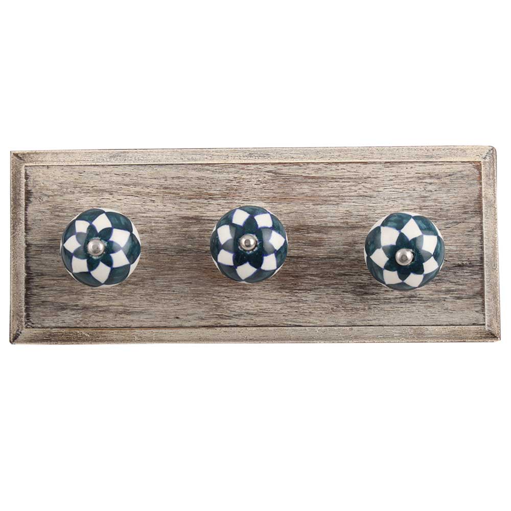 Dark Green Check Ceramic Wooden Hook. A Perfect Complement to the Soft Tone of the Wood are these White Traditional Hat & Coat Hook Made of Genuine Porcelain and Brass. It can be use to Hang Jewellery, Leashes, Towels, Scarves, Light Weight Sweaters, Caps Etc.