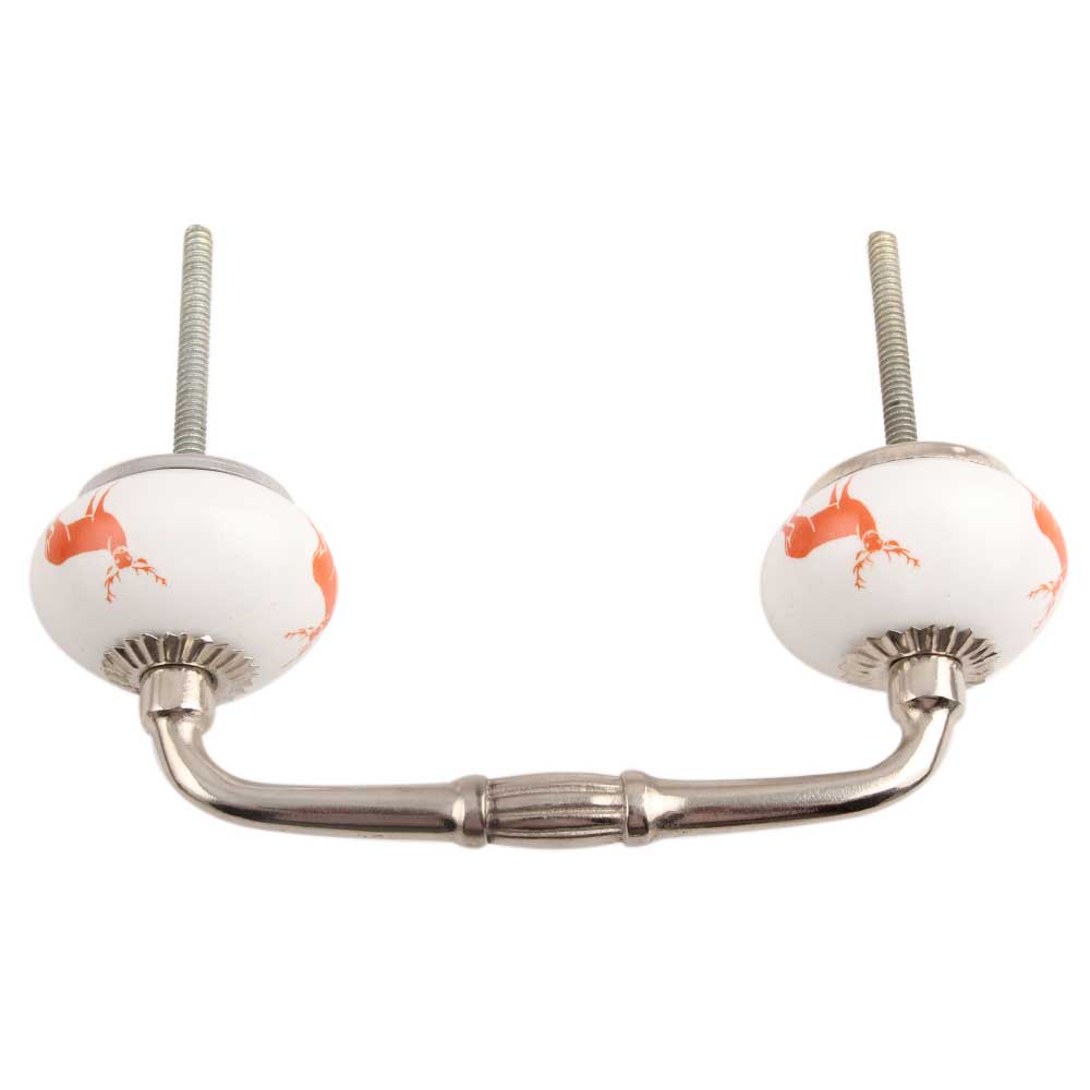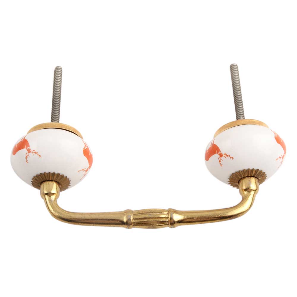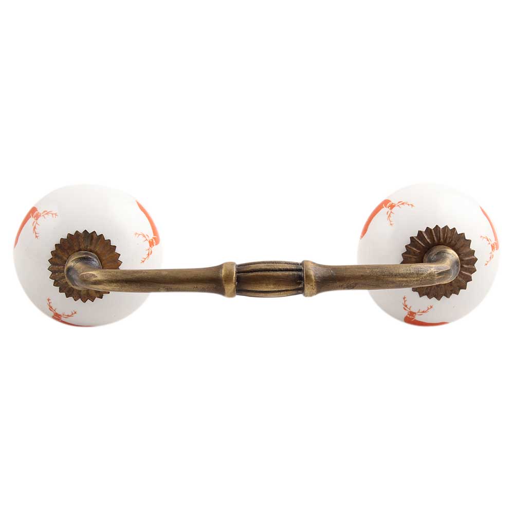 Dark Orange Standing Rein Deer Ceramic Bridge Handle. Ideal for Drawer, Dresser, Cabinet, Wardrobe, Cupboard and Almirah.