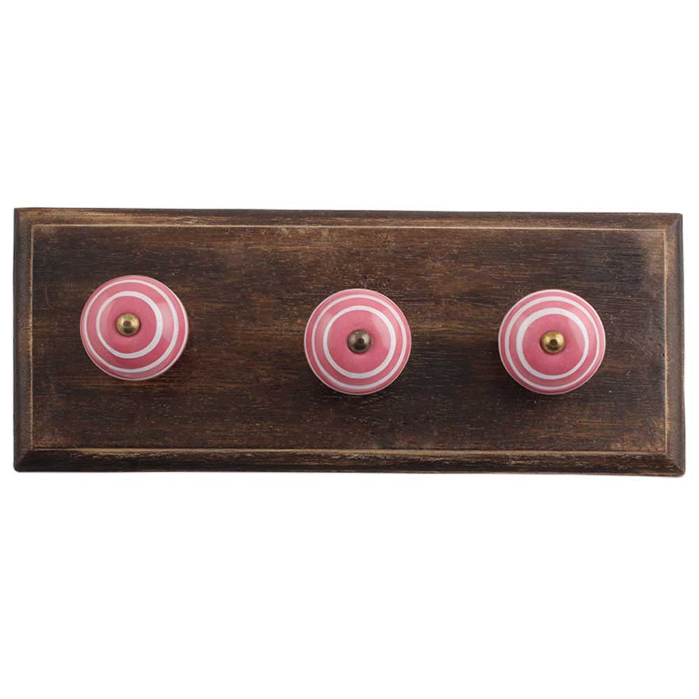 Dark Pink White Strip Wooden Hooks. A Perfect Complement to the Soft Tone of the Wood are these White Traditional Hat Coat Hook Made of Genuine Porcelain and Brass. It can be use to Hang Jewellery, Leashes, Towels, Scarves, Light Weight Sweaters, Caps Etc.