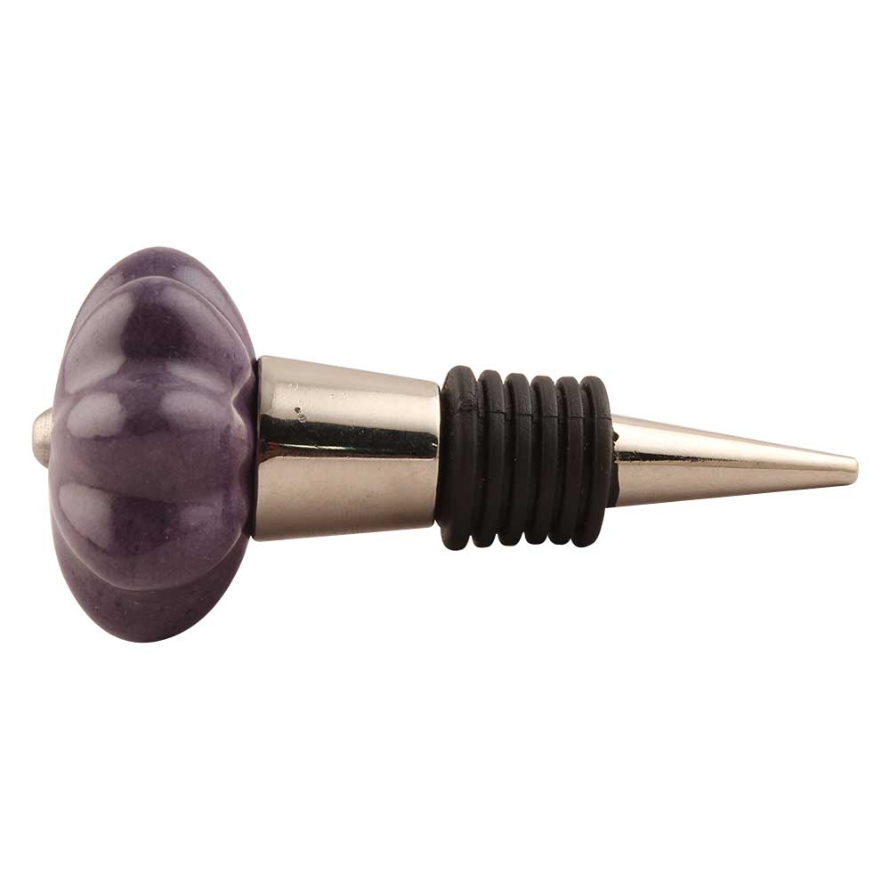 Dark Purple Crackle Ceramic Wine Stopper. Zinc Alloy Wine Bottle Stopper with Attractive Jute Bag Packaging.