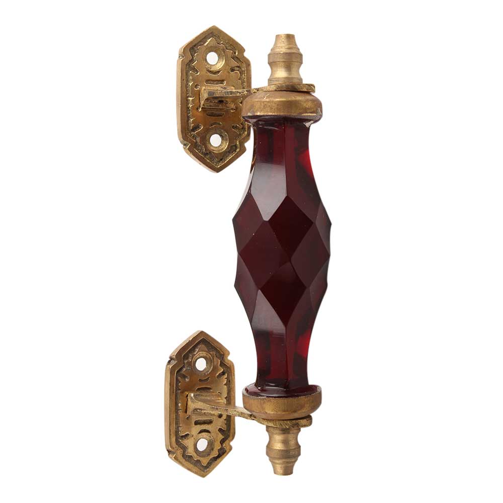 The combination of deep red glass and golden metal creates a timeless and striking contrast that brings sophistication to any room. The deep red hue offers a sense of warmth, while the gold accents elevate the design, making it an eye-catching focal point on any door or cabinet.
