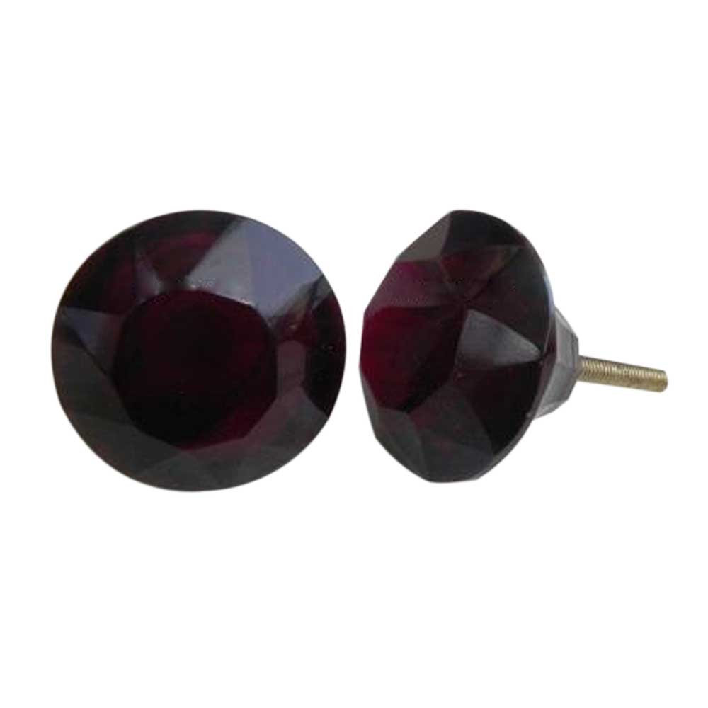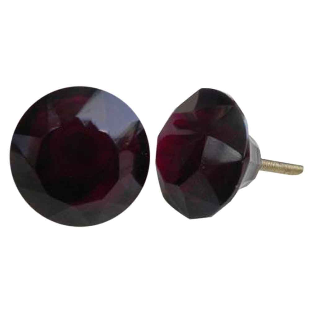 Dark Red Diamond Glass Knobs, Large. Ideal for Drawer, Dresser, Cabinet, Wardrobe, Cupboard and almirah