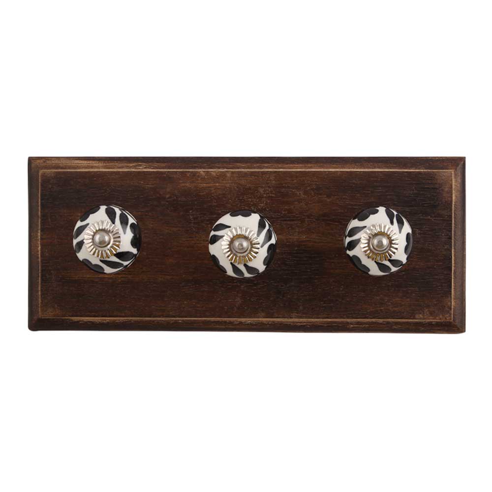 Day Night Ceramic Wooden Hook. A Perfect Complement to the Soft Tone of the Wood are these White Traditional Hat & Coat Hook Made of Genuine Porcelain and Brass. It can be use to Hang Jewellery, Leashes, Towels, Scarves, Light Weight Sweaters, Caps Etc.