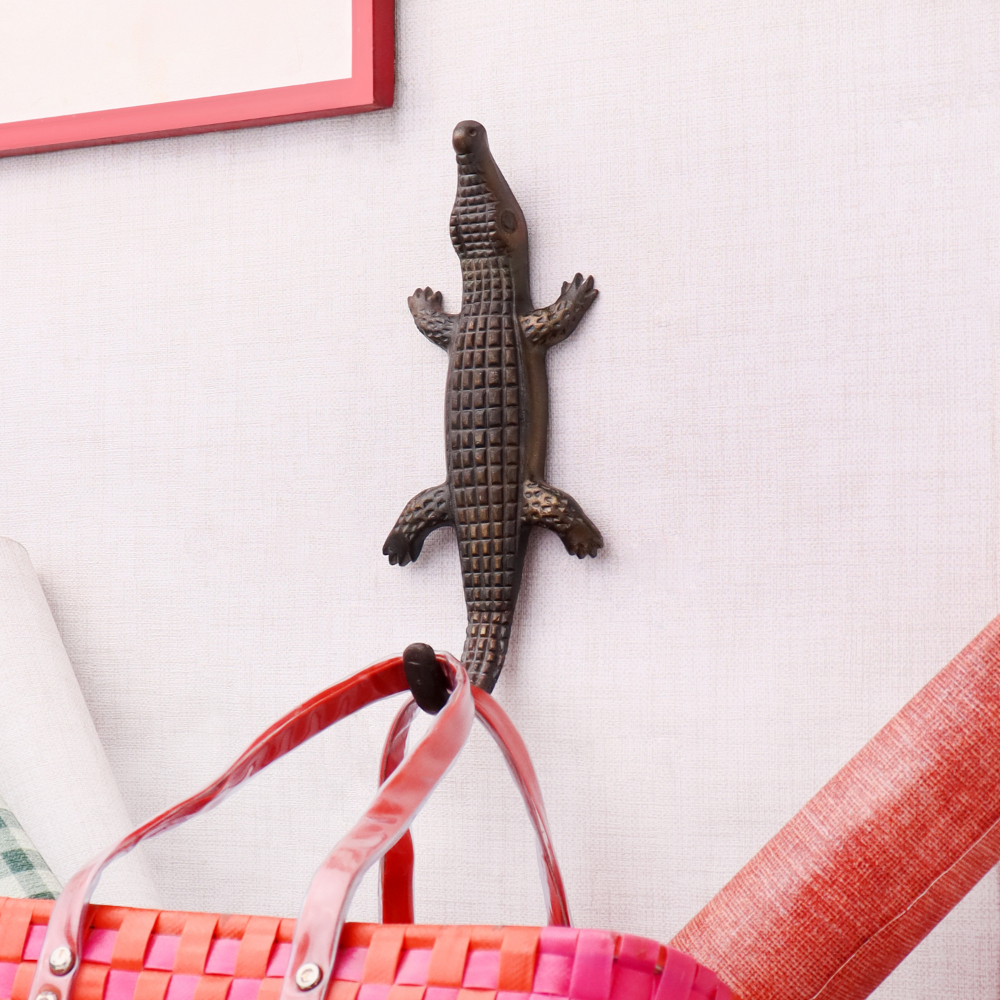 Decorative Antique Iron Crocodile Design Wall Hook is perfect for hanging towels, clothes, hats, bags, keys, scarves and jackets.