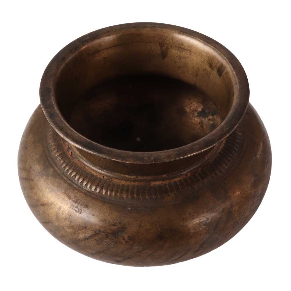 A brass holy water pot with carving work is a decorative and functional religious item that is used to hold holy water in a church or home. The pot is typically made of brass, a durable and attractive metal that is resistant to corrosion and tarnishing. The carving work on the pot often depicts religious symbols or scenes, such as crosses, saints, or angels. These carvings are usually intricate and detailed, and are often done by skilled artisans. The pot is often used for blessings, such as when a priest sprinkles holy water on a person or object. It can also be used for personal devotion, such as when someone dips their fingers into the water and makes the sign of the cross. Overall, a brass holy water pot with carving work is a beautiful and meaningful addition to any church or home.