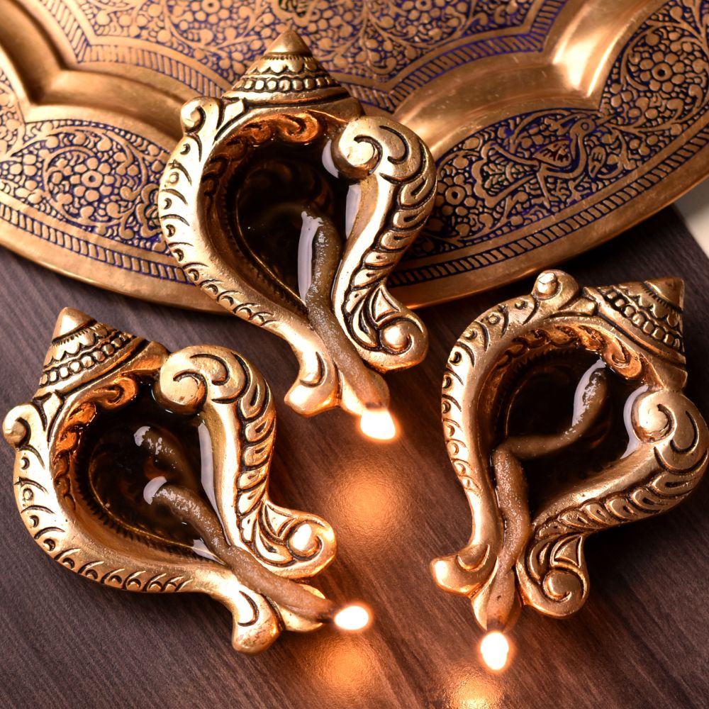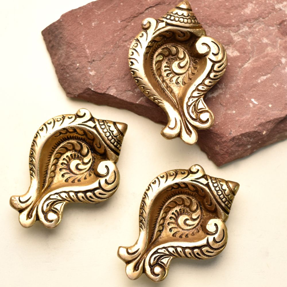 Celebrate tradition with this Decorative Conch Single Wick Oil Lamp, a diya inspired by the sacred shankh (conch) that symbolizes purity, prosperity, and divine blessings. Handcrafted in solid brass with a radiant golden finish, this diya merges cultural symbolism with timeless artistry. Its elongated design with a single wick makes it perfect for temple rituals, Diwali celebrations, and auspicious gifting.