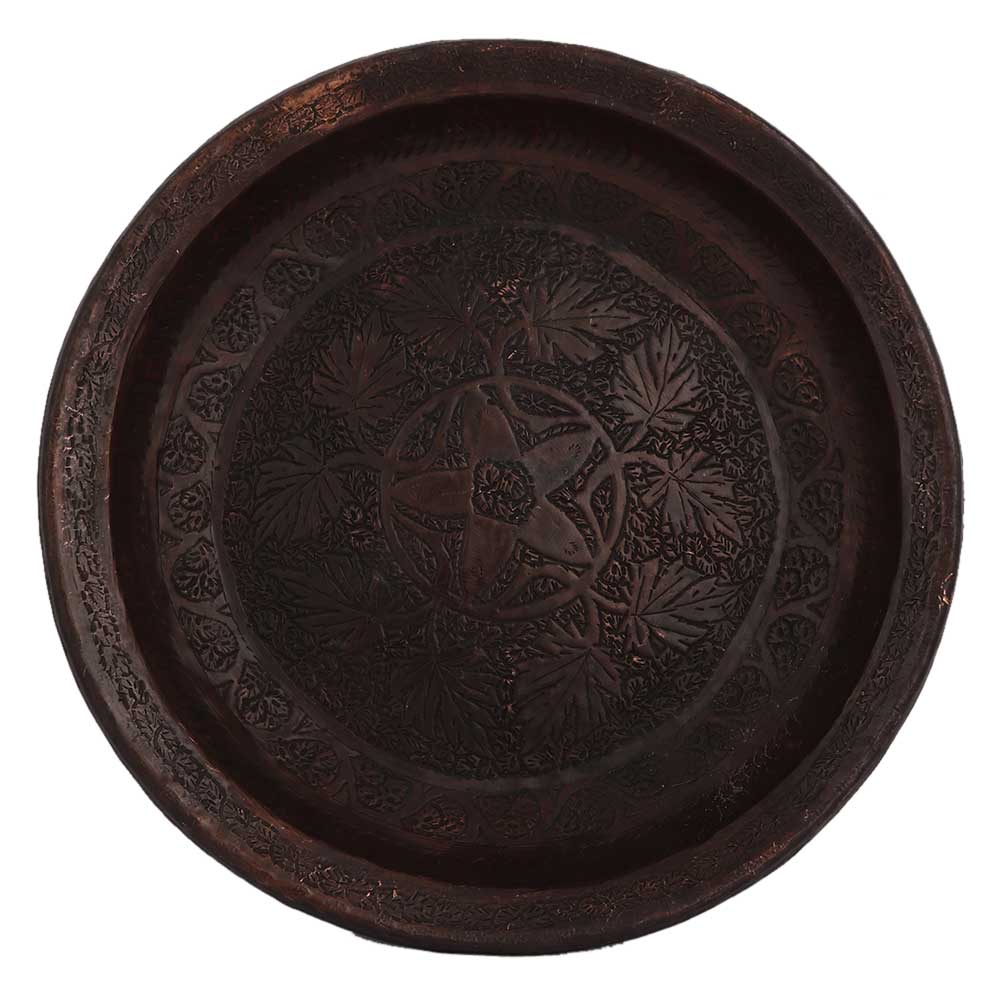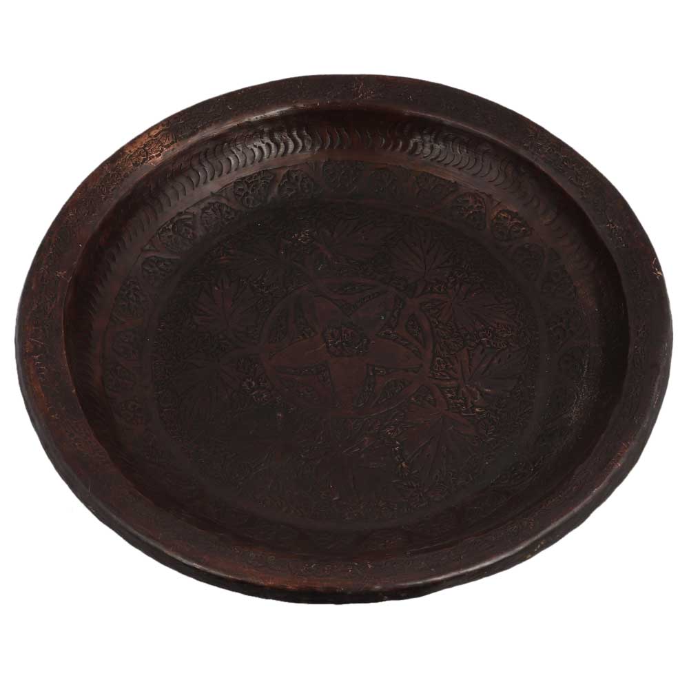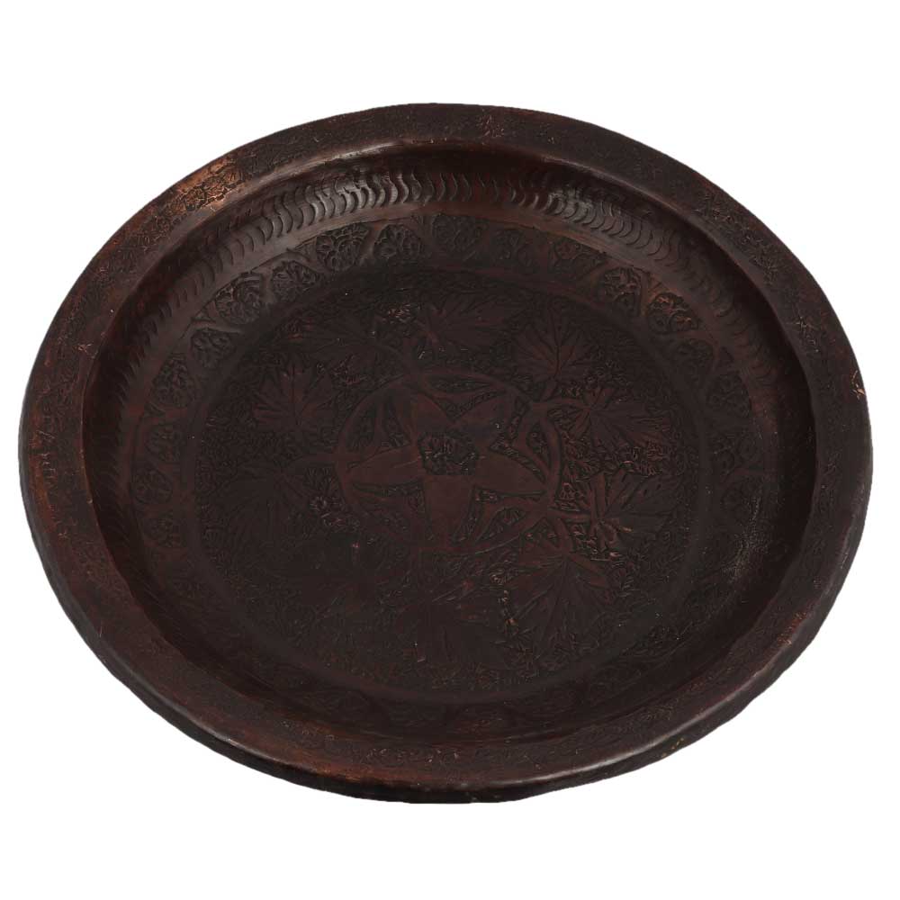 A very Popular Kashmiri copper Plate with a beautiful flower engraved in the centre. It can be used as wall decor home decor table decor. It can also serve utility purpose, Diwali gift, wedding gift and house warming gift.