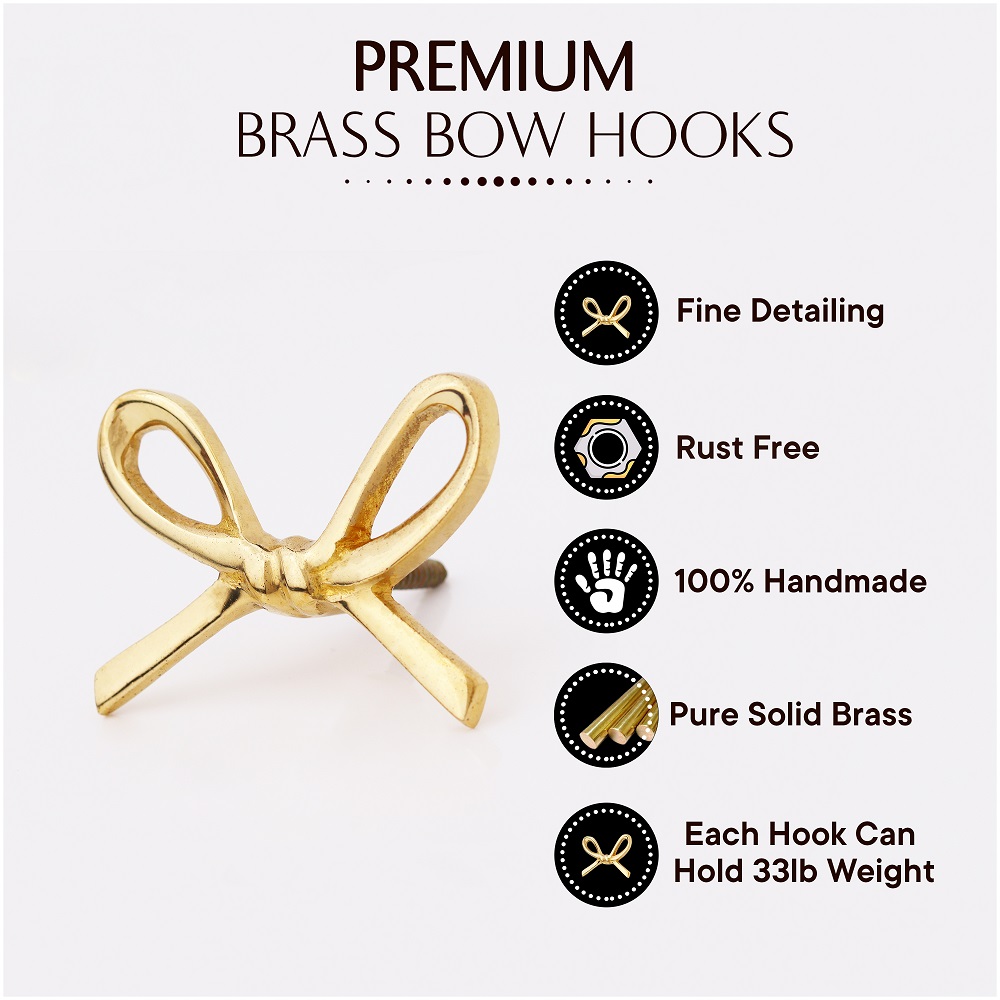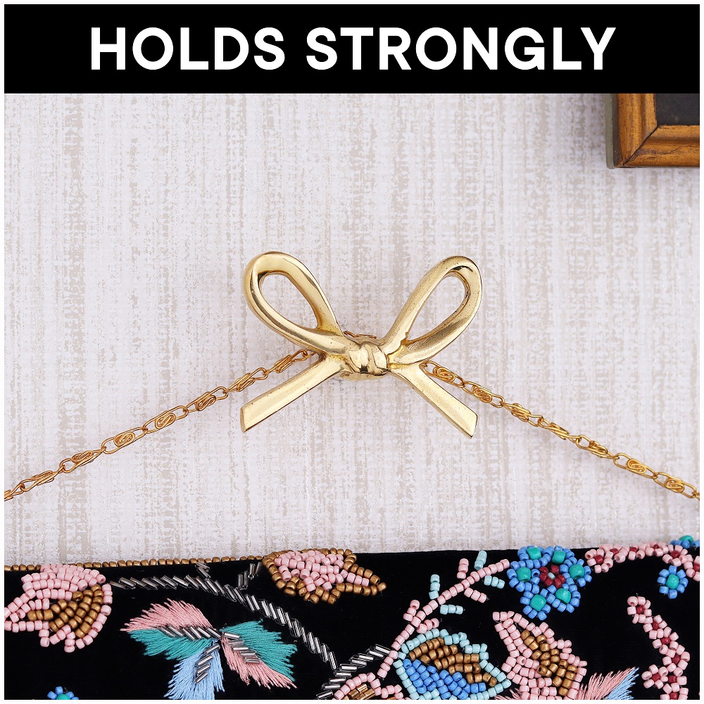 Delicately crafted from solid brass, the Decorative Golden Brass Bow Coat Hook brings both grace and strength to your wall décor. Inspired by classic bow shapes and finished in radiant gold, this wall-mounted hook doubles as a decorative accent and practical storage solution. Handcrafted with attention to detail, it adds a charming, upscale touch to bedrooms, entryways, and vanity areas—making organization feel like part of your interior styling.