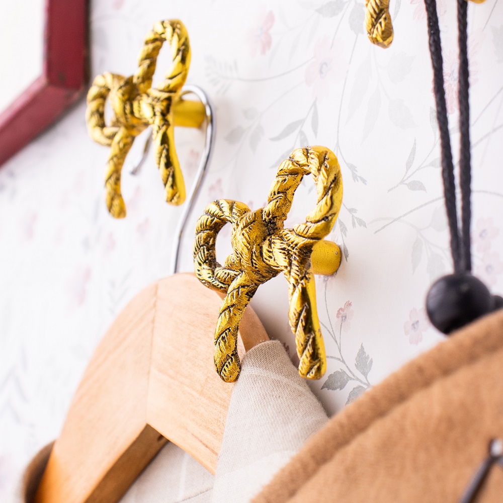 Decorative Gold Bow Metal Wall Hooks-3 Pieces. This Hook is Strong Enough to Hold Your Cloths, Keys, Tea Cups, Coffee Mugs, Hand Towels Etc.