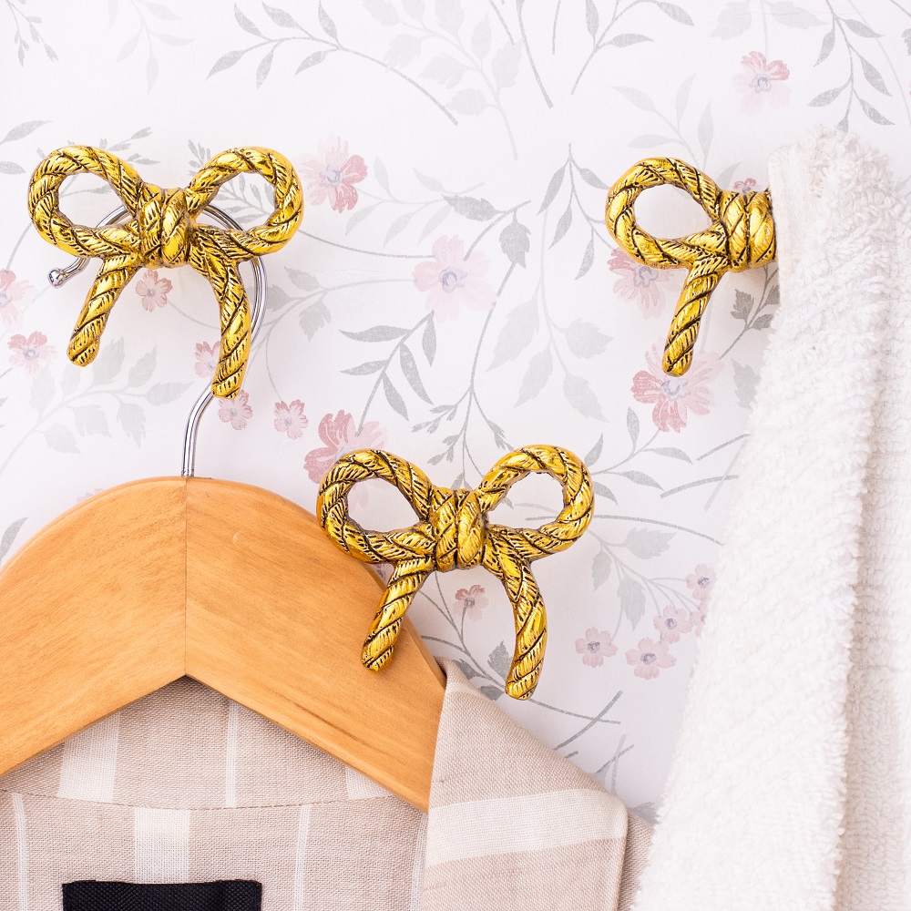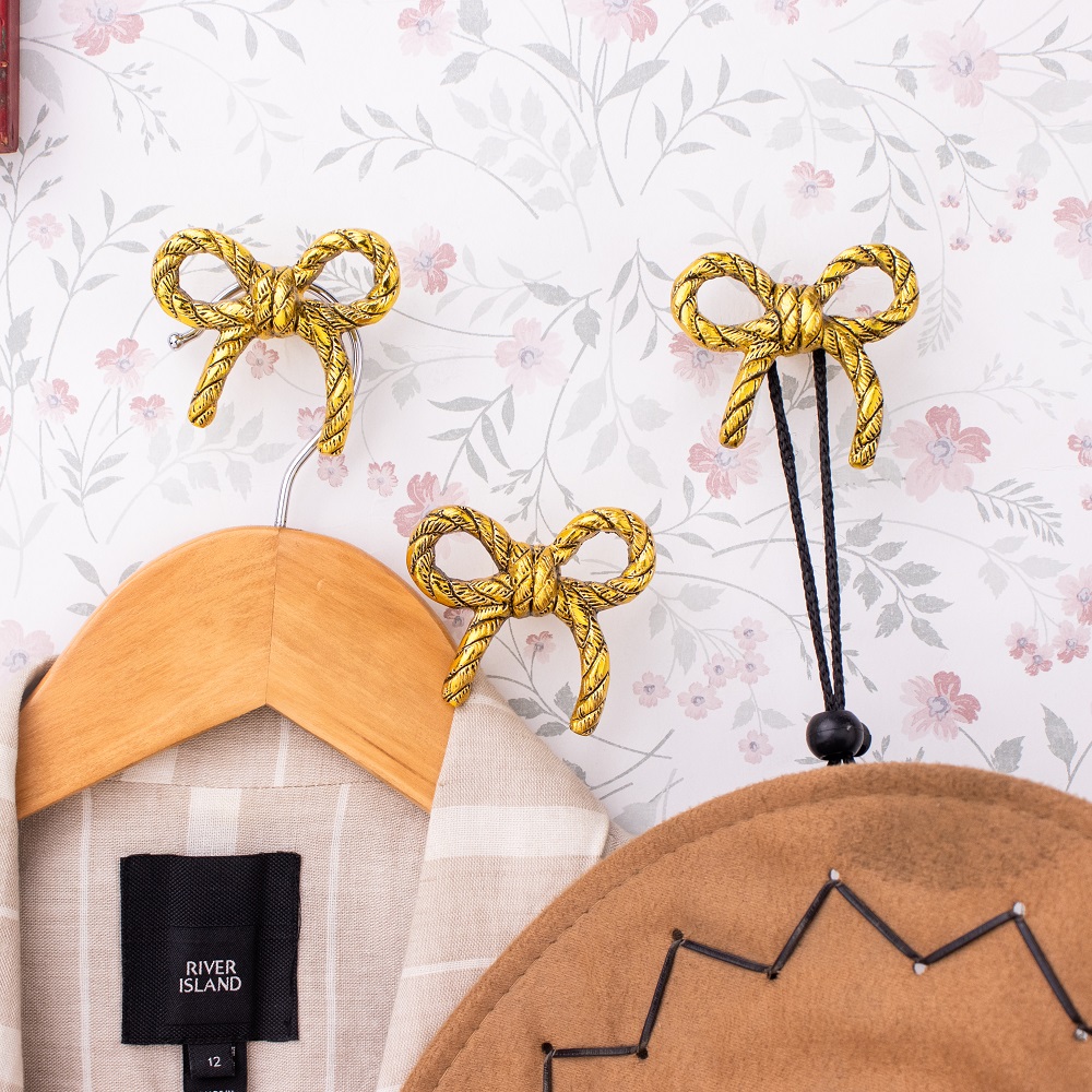 The graceful bow design and gold finish make these hooks stand out as decorative pieces while staying highly functional.