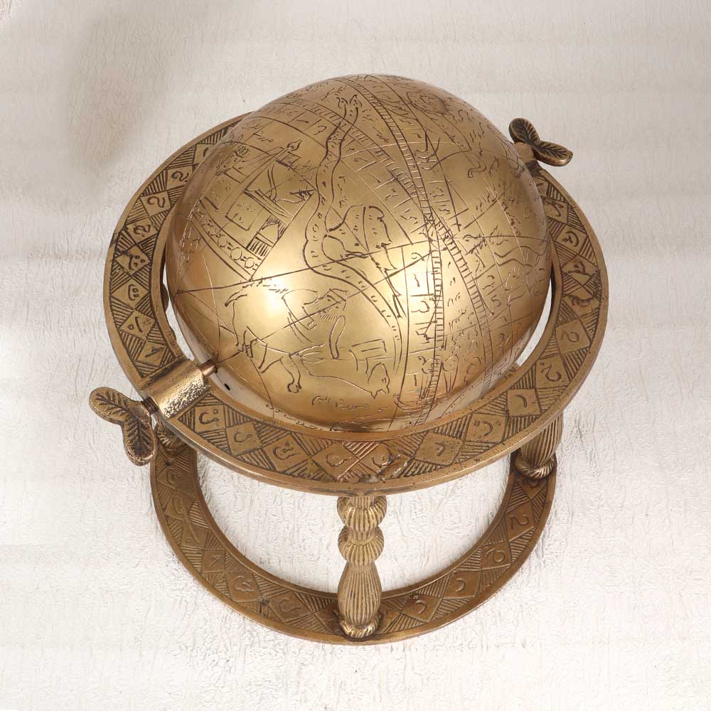 - Handcrafted brass globe with Arabic scripts naming cities and regions