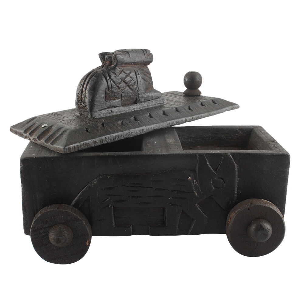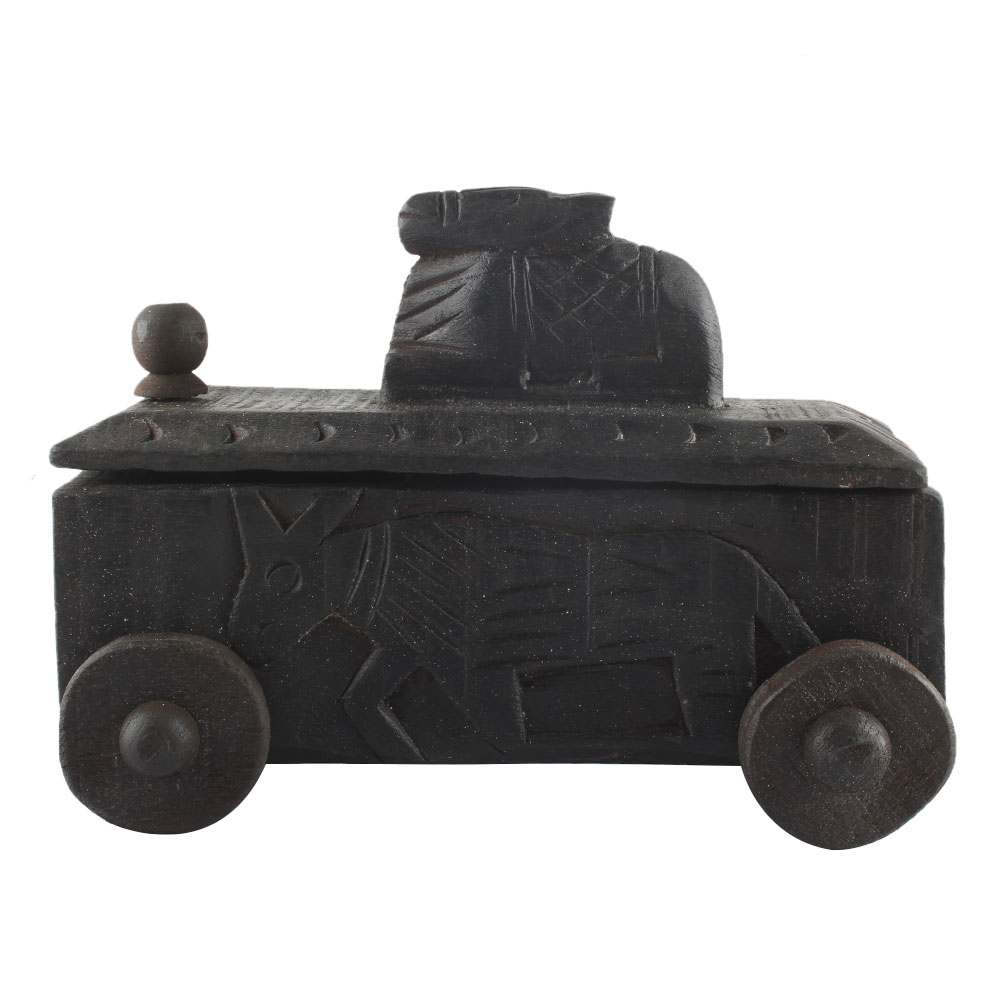 Decorative Nandi Wooden Box South Indian Spice Box. Ceramic Drawers in Wooden Frame. The Spice Boxes are designed with different patterns. These boxes are made using natural wood which does not harm the purity of spices.