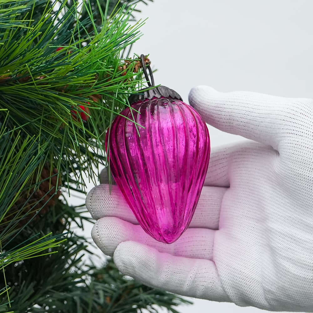 Decorative Pink Glass Christmas Ornament Hanging . Crafted from high-quality glass with a smooth glossy finish, this decorative bauble adds a classic and festive touch to Christmas trees, wreaths, and holiday displays.