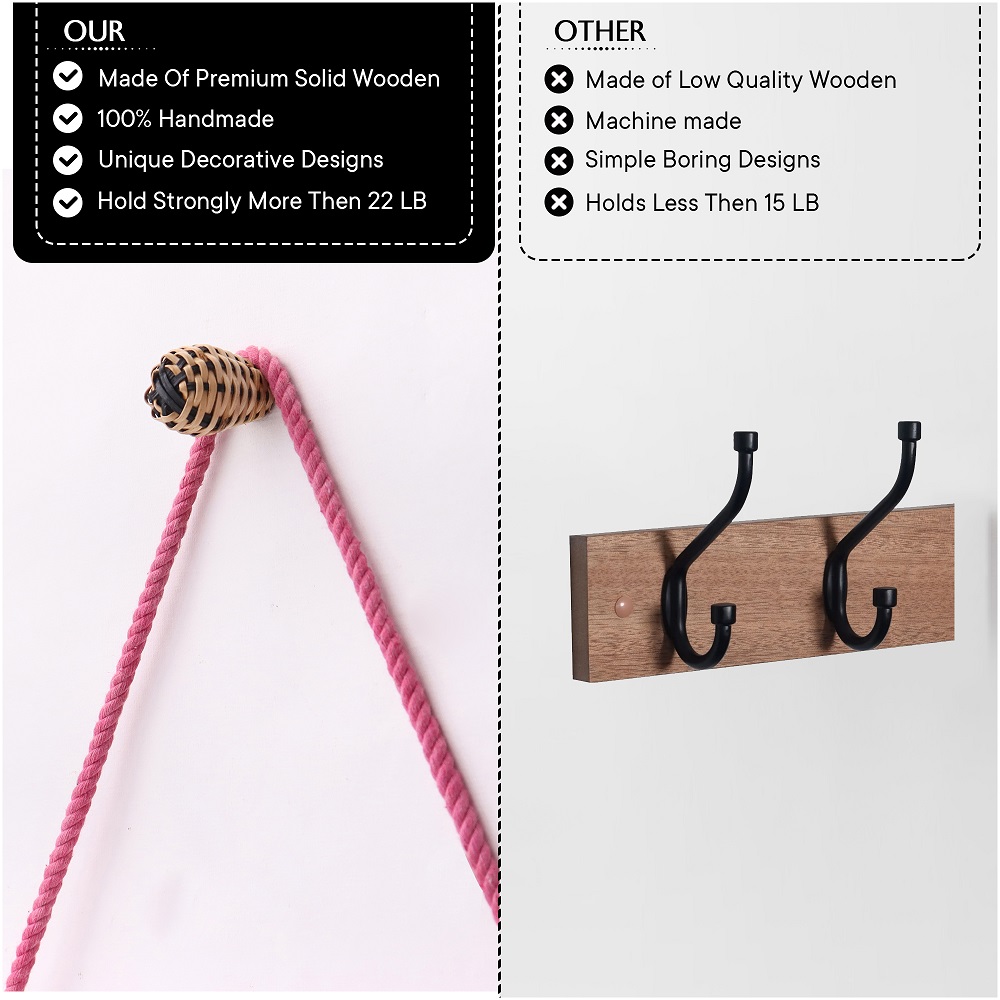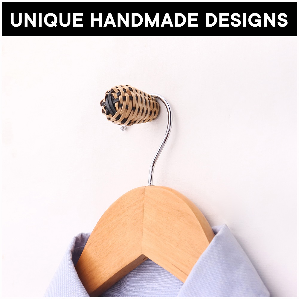 Elevate your wall organization with the Rattan Natural Black Wall Hooks – Set of 6. These handcrafted hooks are made from eco-friendly rattan, known for its strength, flexibility, and lightweight charm. Featuring a bold black finish, each hook balances rustic warmth with a modern, minimalist aesthetic. Whether you're styling your entryway or adding function to your bedroom, these decorative wall hooks bring natural texture and practical elegance to any space.