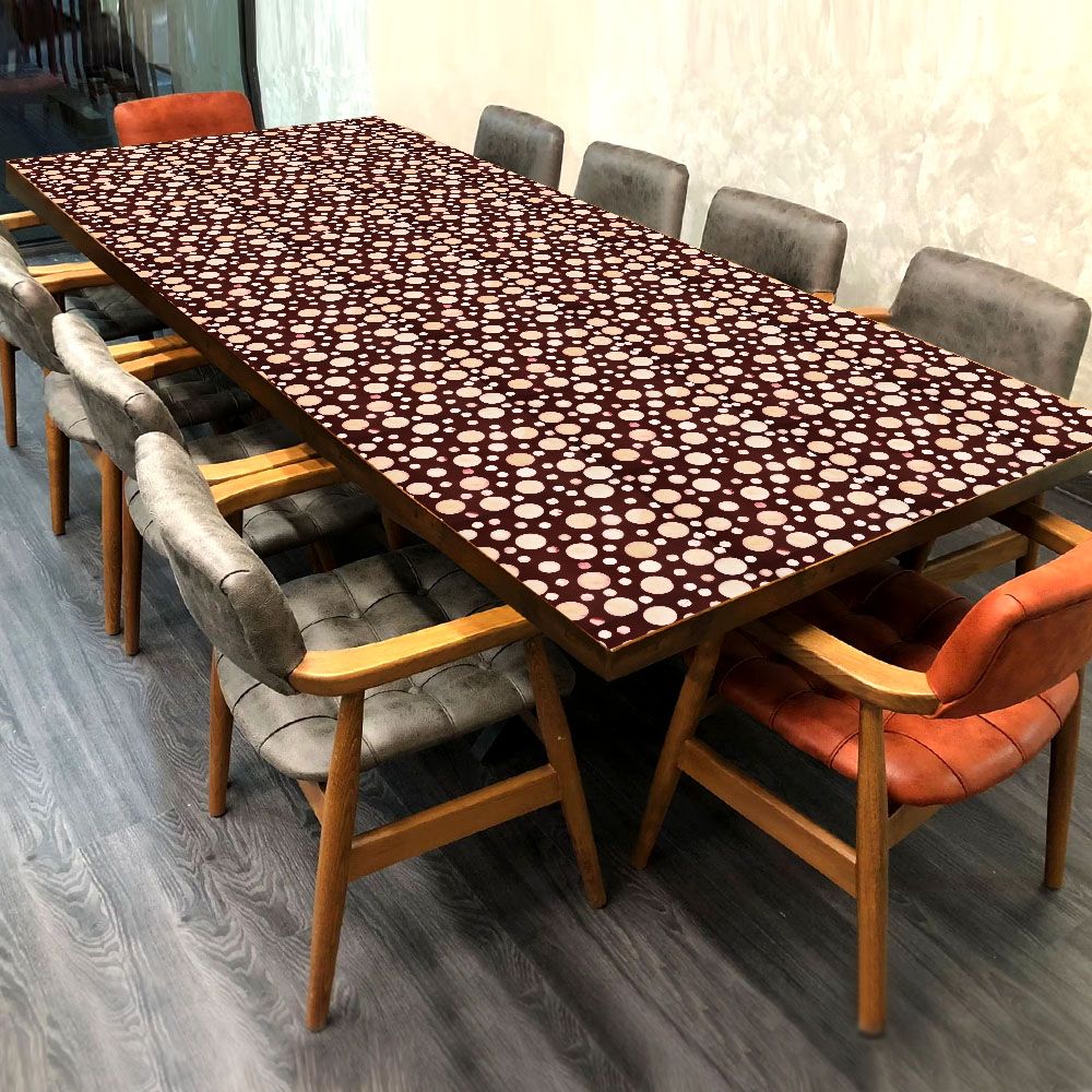 Buy a table top online that is made of Wood, Acrylic, and Resin, a stunning fusion of craftsmanship and artistry. This remarkable table top features a rich brown background that captivates the eye, adorned with delicately engraved white bubbles that create an enchanting visual effect. Whether placed on your dining table, coffee table, patio table, or bedside table, this beautiful piece is sure to enhance any space with its irresistible charm. It is handmade by highly skilled Indian artisans, each table top is a testament to their expertise and attention to detail. The vibrant colours and impeccable finish lend a touch of elegance to any setting, making it an ideal decorative piece for your home, office, restaurant, or hotel. Its versatility extends to being an extendable table, perfect for accommodating extra guests during gatherings. With its impeccable quality, this table top is more than just a decorative item; it is a gift that showcases thoughtfulness and admiration for your loved ones on special occasions. Add a touch of sophistication to your surroundings and make a lasting impression with this remarkable Wood, Acrylic, and Resin Table top.