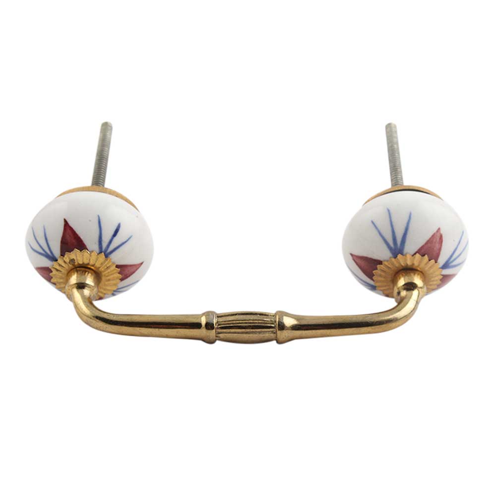 Deep Maroon Lily Ceramic Bridge Handle. Ideal for Drawer, Dresser, Cabinet, Wardrobe, Cupboard and Almirah.