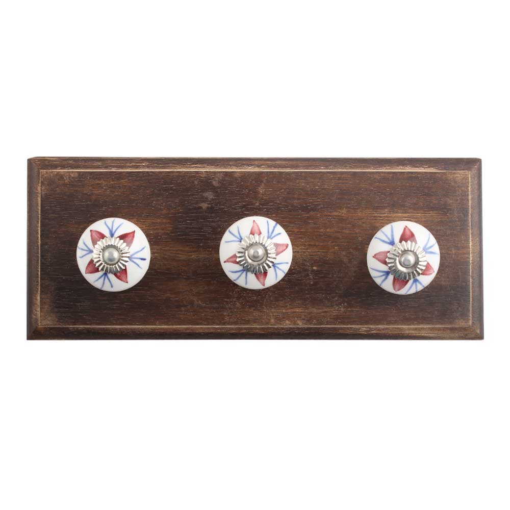 Deep Maroon Lily Ceramic Wooden Hook. A Perfect Complement to the Soft Tone of the Wood are these White Traditional Hat & Coat Hook Made of Genuine Porcelain and Brass. It can be use to Hang Jewellery, Leashes, Towels, Scarves, Light Weight Sweaters, Caps Etc.