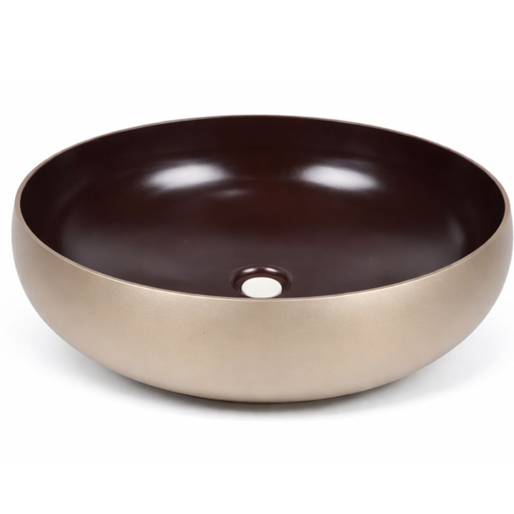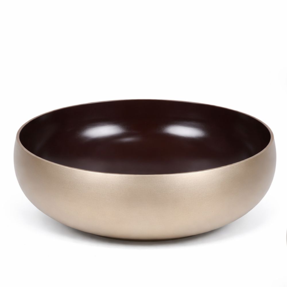 This designer bronze basin combines a rich brown interior with a softly muted gold exterior. Crafted by skilled Indian artisans, the contrast of finishes creates a refined visual balance suited for modern bathrooms and curated interiors. The smooth inner surface enhances daily usability while the outer tone adds understated luxury. Packed and quality checked by Indianshelf.