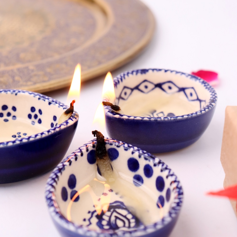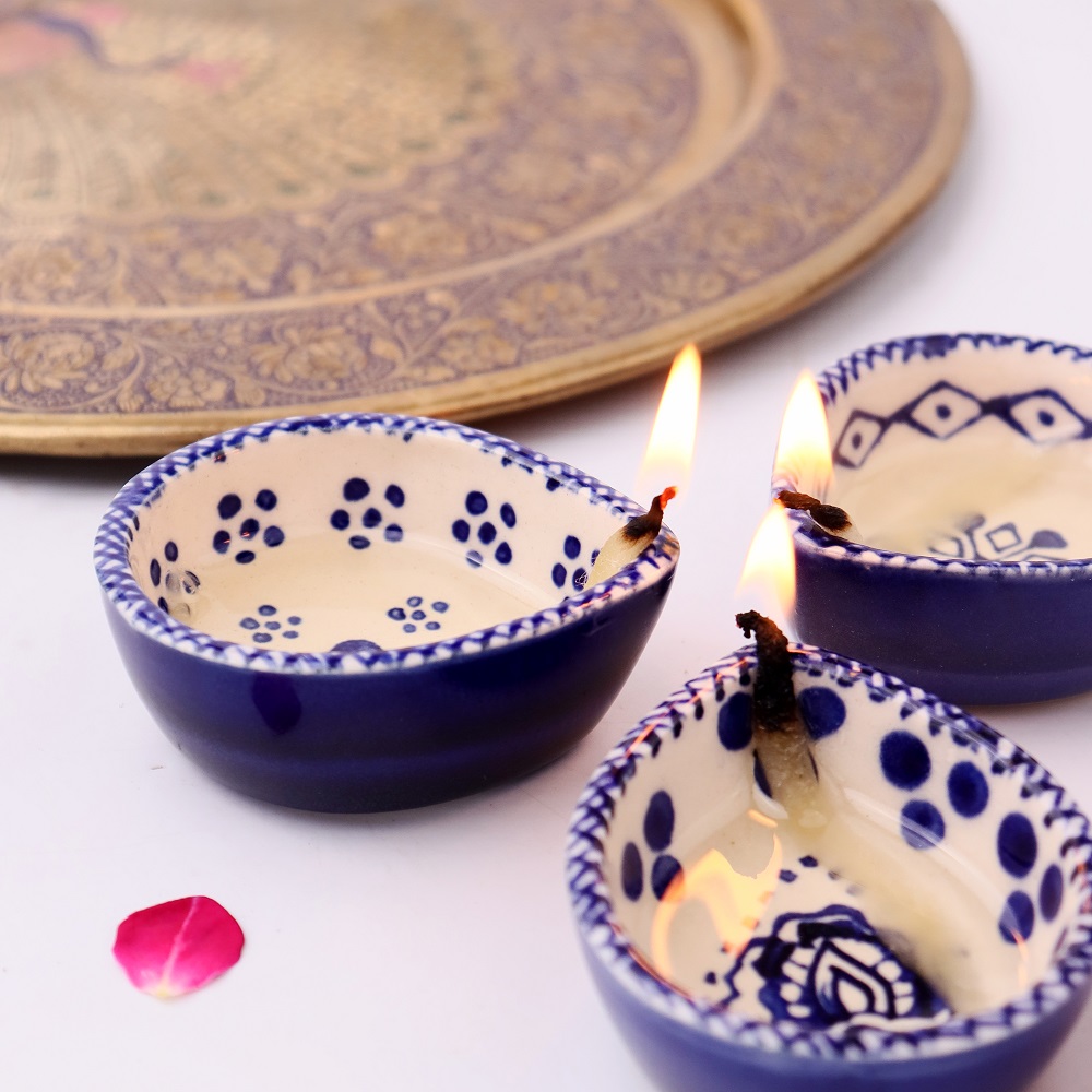 Illuminate your temple with this designer ceramic blue and white Diwali diya, thoughtfully created to bring a touch of elegance and devotion to every ritual. Hand-painted with intricate blue motifs on a smooth white ceramic base, this diya reflects the perfect balance of tradition and artistry. Compact yet graceful, it is ideal for daily puja, festive celebrations, and temple décor, while adding a timeless charm to your sacred space.