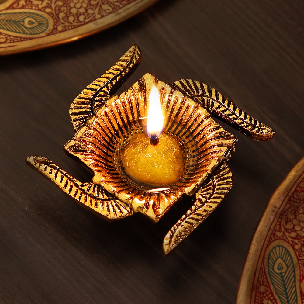 Like all metal diyas, it warms up; place it on a stable, heat-resistant surface.