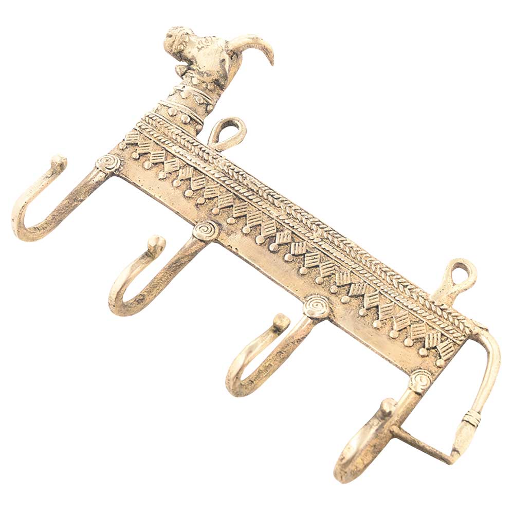 Elegant 4 Brass Hooks with Brass Cow Motifs Displaying the Intricate Craftsmanship of the Artisan. these can be Nailed on Any Surface for Hanging Your Hats, Umbrellas, Light Coats, Caps, Scarves, and Other Such Pieces in Your Home or Work Place.