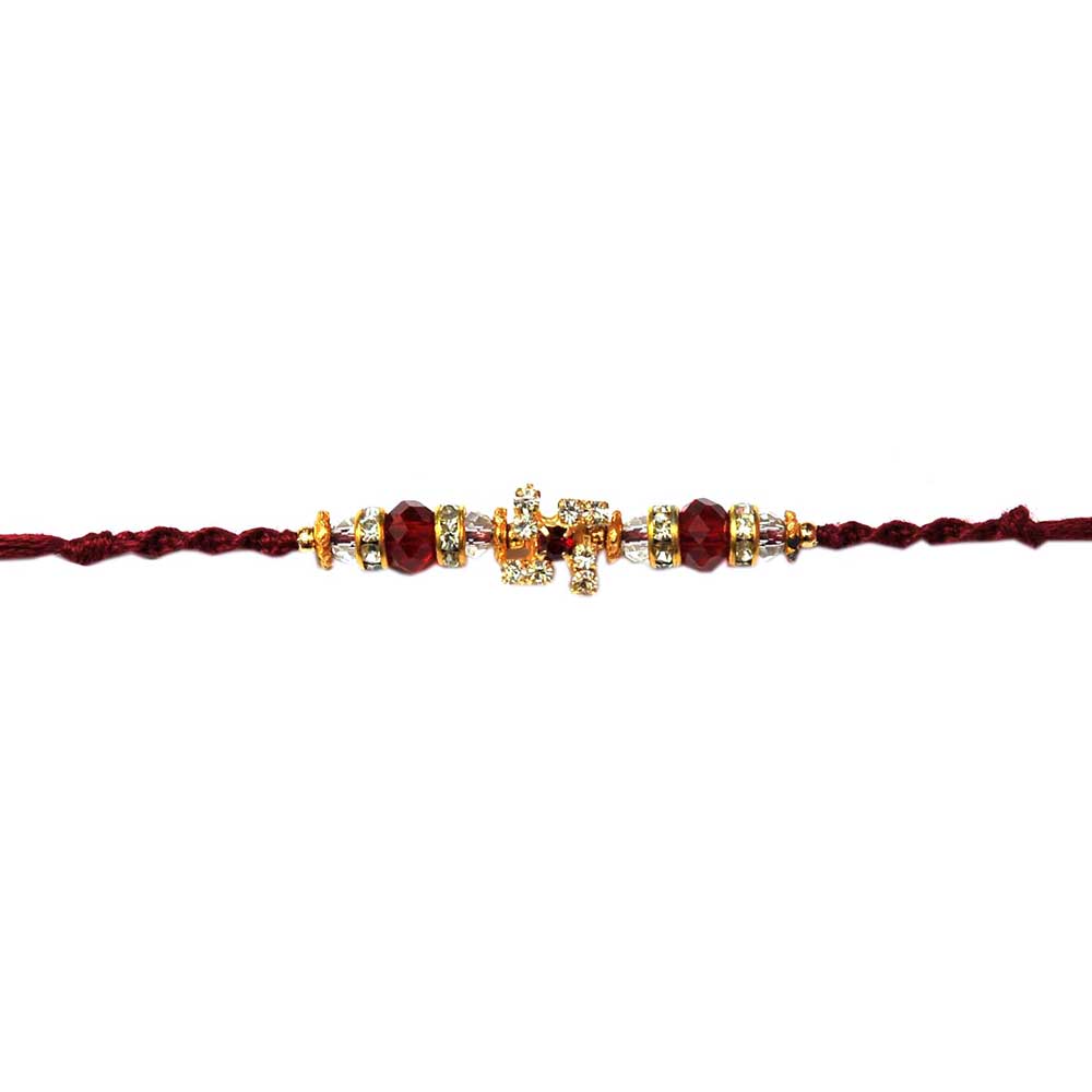 Diamond Swastik with Red-White Beads Rakhi