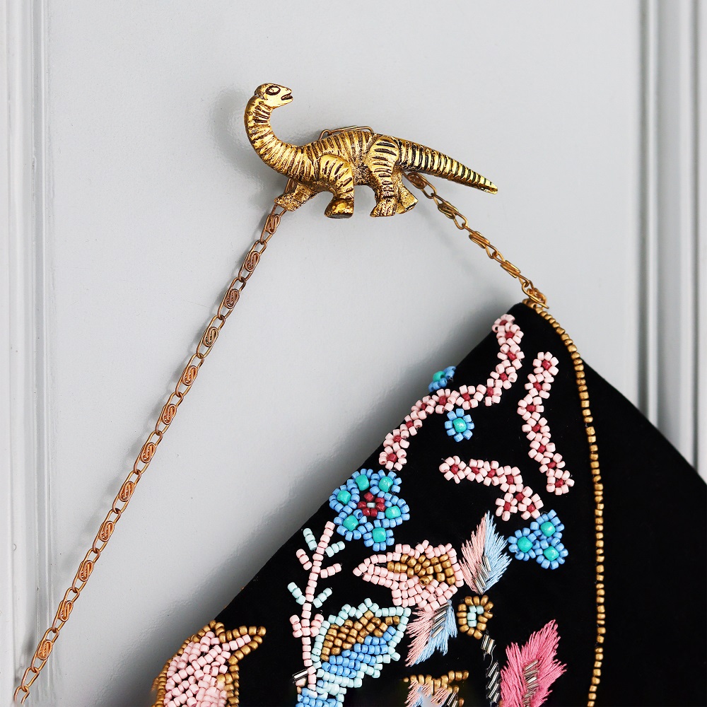 Shaped like a dinosaur and finished in lustrous gold, this hook stands out as a playful yet classy addition to any wall – turning a basic utility into a standout decor feature.