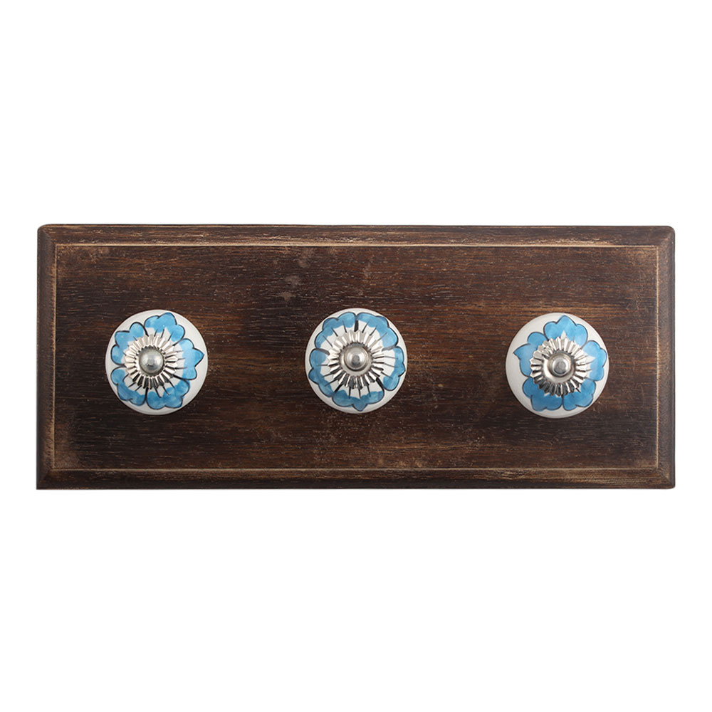 Divine Floral Ceramic Wooden Hook. A Perfect Complement to the Soft Tone of the Wood are these White Traditional Hat & Coat Hook Made of Genuine Porcelain and Brass. It can be use to Hang Jewellery, Leashes, Towels, Scarves, Light Weight Sweaters, Caps Etc.