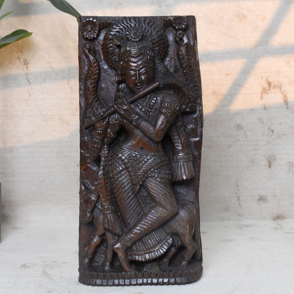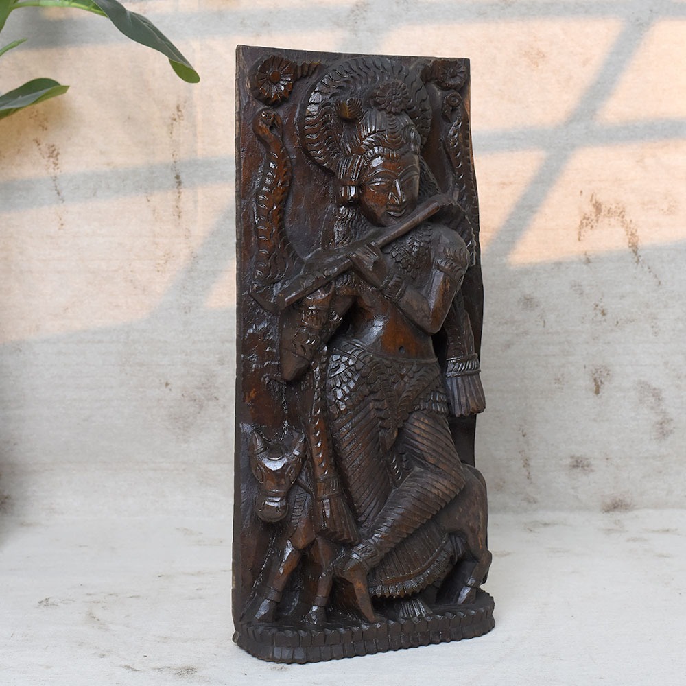 The Wooden Krishna Flute Statue reflects centuries of Indian artistic tradition. With its intricate detailing and devotional symbolism, it stands as both a spiritual icon and a fine piece of art.