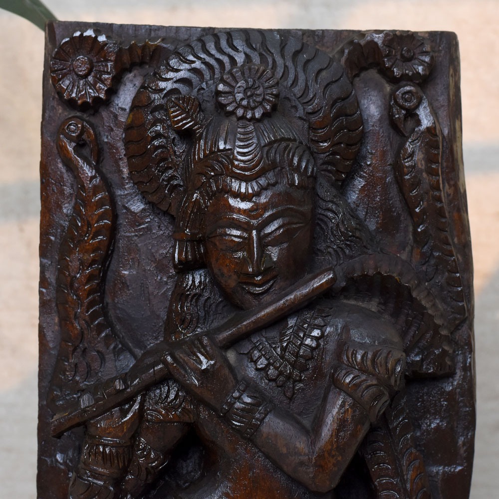 - Depiction: Krishna playing the flute with divine serenity