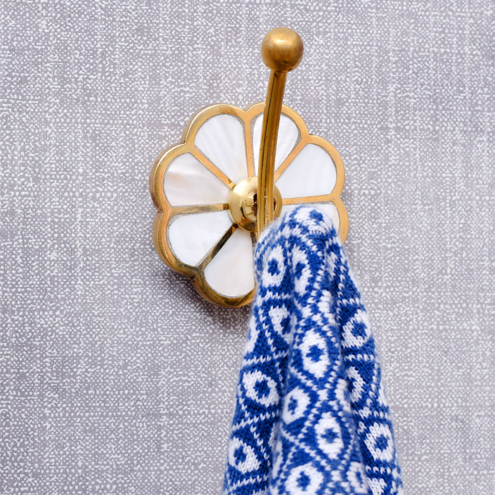 If you're aiming to enhance your entryway, hallway, or bedroom, this elegant coat hook will elevate the decor of any room. The blend of mother of pearl and gold brass makes it a perfect fit for traditional, modern, or eclectic interior styles.