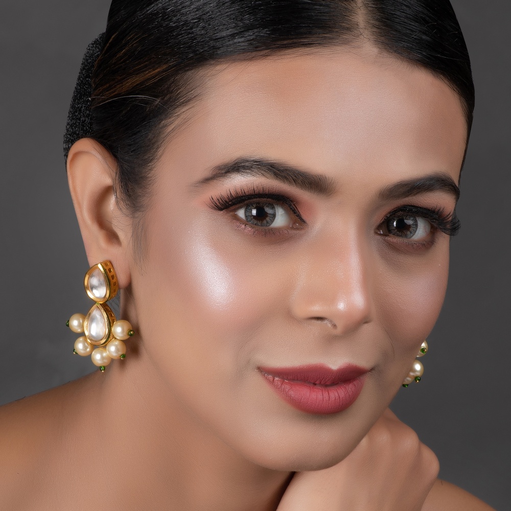 Celebrate grace and sophistication with our handcrafted Double Teardrop Mirror & Pearl Cluster Earrings. Each piece features two mirrored teardrop stones stacked elegantly, complemented by a cluster of creamy pearls with delicate green accents. Perfect for weddings, festive occasions and thoughtful gifting, they add understated glamour to any outfit.